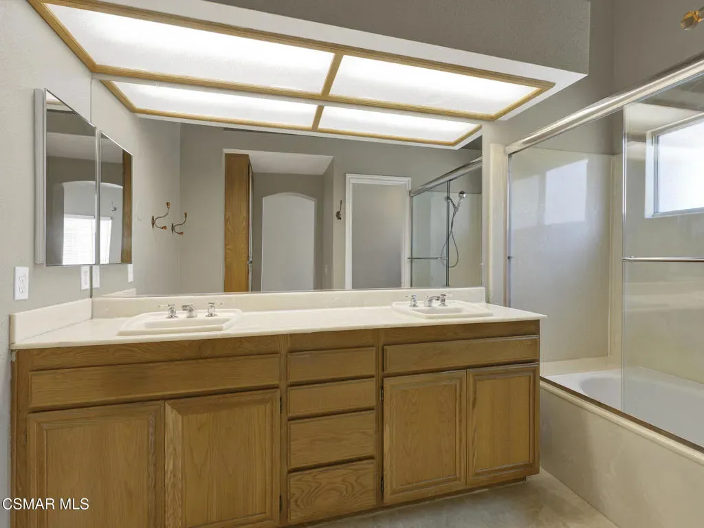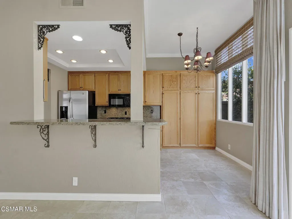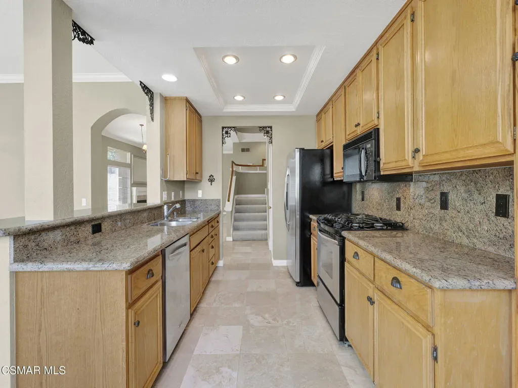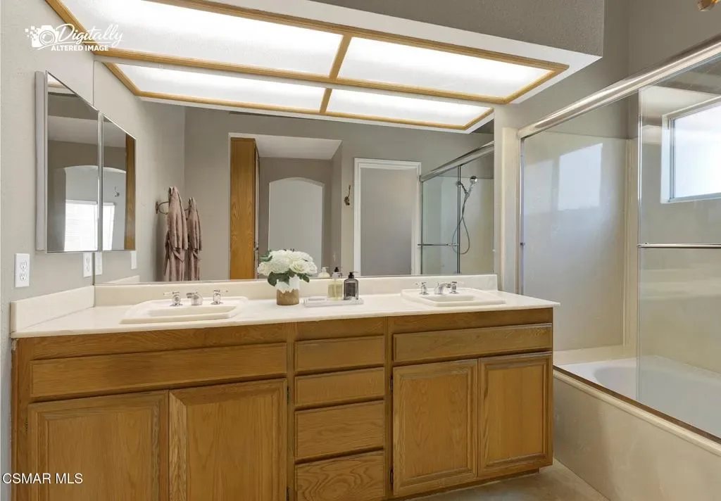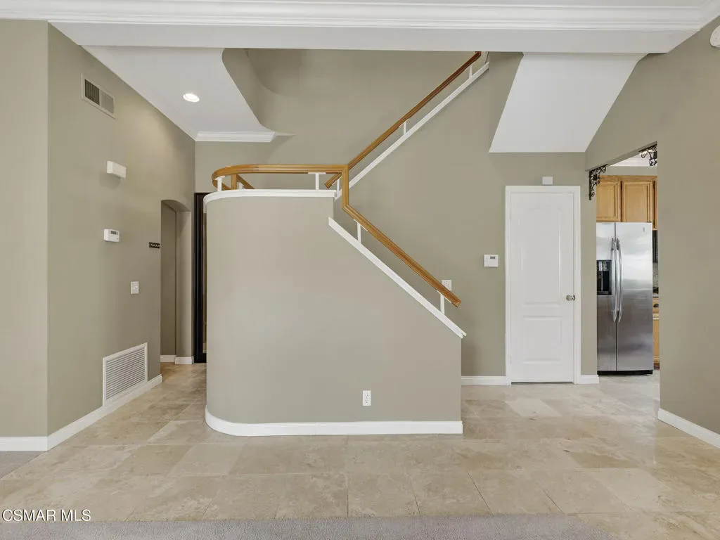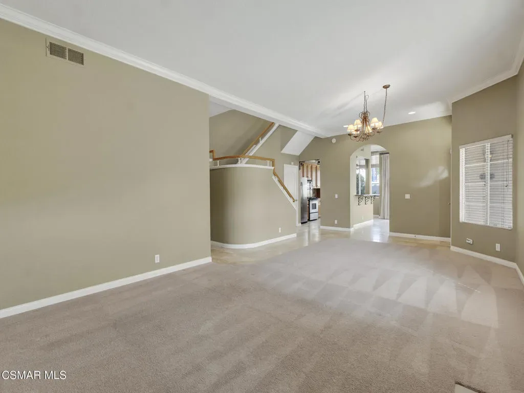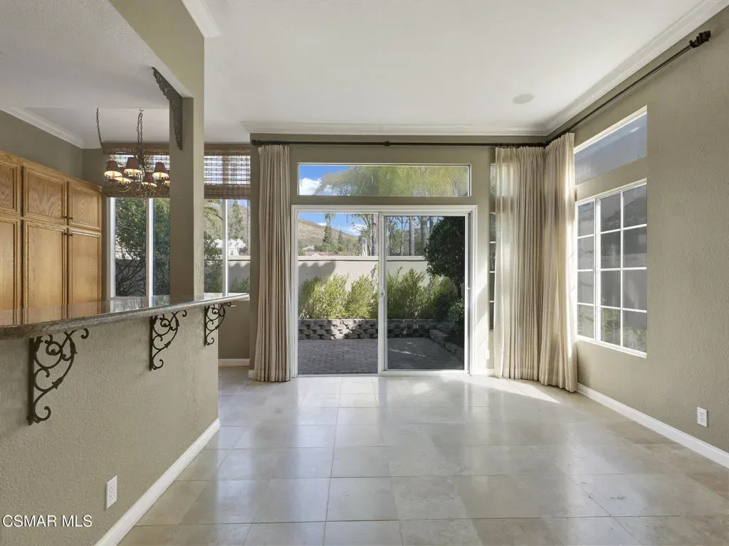 Located in the desirable Village on the Green community, this spacious end-unit home offers the largest floorplan in the neighborhood and a prime location just steps from the pool. With over 1,800 square feet of interior living space, the home feels bright and expansive, enhanced by an abundance of windows throughout.The inviting living room features vaulted ceilings, a cozy fireplace, and flows seamlessly into a separate formal dining area–perfect for entertaining. The well-appointed kitchen offers granite countertops, abundant cabinetry, a walk-in pantry, and a breakfast bar that opens to a generous nook area for casual dining or a family room. A private patio with pavers provides an easy-to-maintain outdoor space, ideal for relaxing or entertaining.The home also includes direct access to a large two-car garage, with washer and dryer hookups.Upstairs, a skylight in the hallway fills the space with natural light. All bedrooms are thoughtfully situated, including a spacious primary suite with mirrored doors at the walk-in closet, dual sinks, and a tub/shower combination. Two additional bedrooms feature mirrored wardrobe doors and share a full bathroom with dual sinks and a tub/shower combo. A convenient guest bath is located downstairs.The community offers a pool, spa, shower area, and plentiful guest parking. Located within the beautifully maintained Wood Ranch master-planned community, residents enjoy close proximity to scenic trails, shopping, and a golf course -making this an exceptional place to call home.