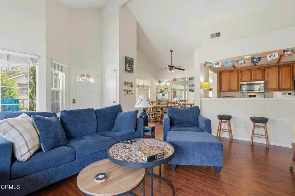 A desirable upper-level condo in the sought-after Village on the Green at Wood Ranch community. Ideally positioned in the center of the complex away from major streets, this light-filled home offers vaulted ceilings, a fireplace, an open floor plan, and a spacious primary suite with dual sinks and generous closet space. Recent updates include a newer refrigerator, washer, dryer, and thermostat.The private patio provides space for grilling and outdoor seating, with the community pool and spa just moments away. HOA amenities include Spectrum WiFi and TV (ESPN, HBO, Hulu, Disney+), trash, landscaping, exterior maintenance, and ample guest parking. The community is beautifully maintained with pet-friendly green spaces and thoughtfully placed pet stations throughout.Located just minutes from Wood Ranch Golf Club, Starbucks, and the Ronald Reagan Presidential Library, this is a rare opportunity to own in one of the area’s most desirable communities.Tenant occupied & cat inside – do not disturb tenants or let the cat out! Tenants will move out by June 31st.