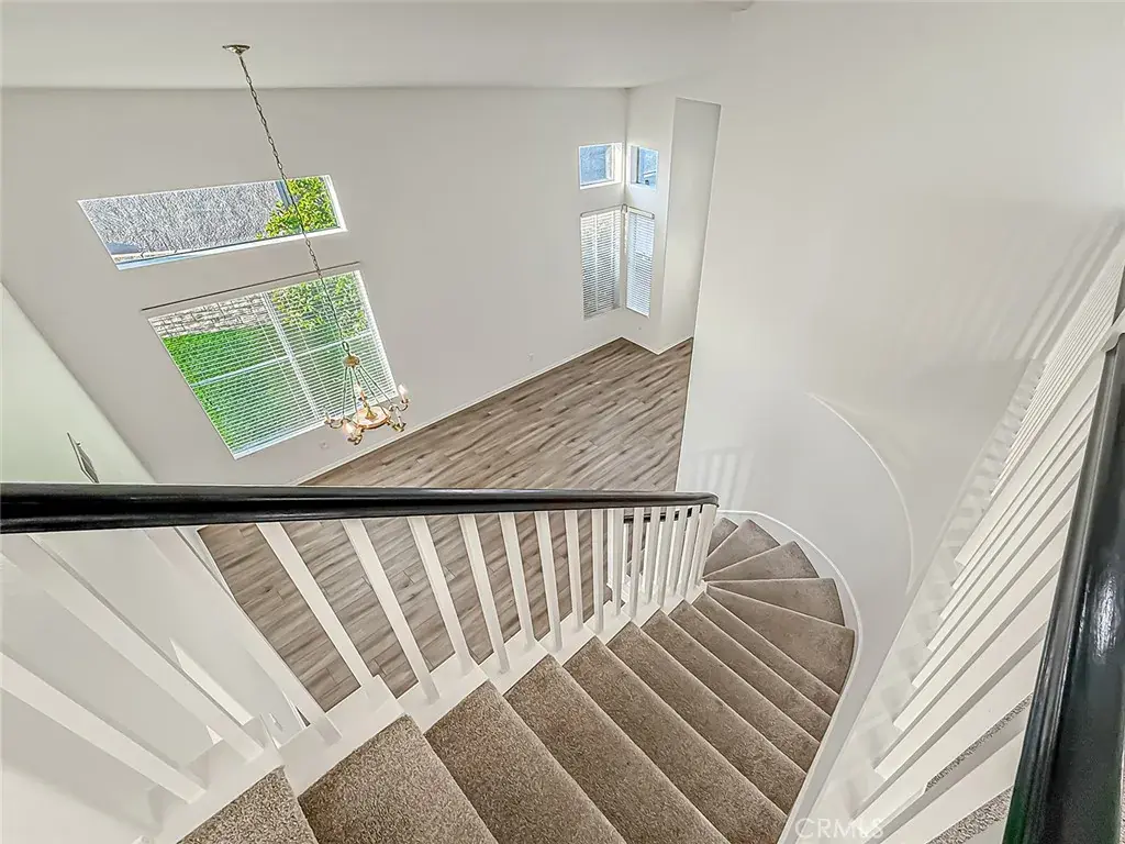 Come inside and go down the hallway leading to a bedroom, a full-size bath, and a 3-car garage. Make your way up the spiral staircase to a large loft area. If desired, the loft can be easily converted to a 5th bedroom or used as a home office as-is. Upstairs you will find a spacious and grand master suite with double door entry, high ceilings, lots of windows, two walk-in closets with mirrored entry doors, a spa-size tub, a separate shower, and dual sinks. Upstairs also offers gorgeous mountain and sunset views from both the master bedroom as well as the master bath. Additional features include two additional large secondary bedrooms upstairs with access to a full bath with dual sinks, a laundry room with washer/dryer hook-ups & cabinetry, recessed lighting, light fixtures, and much more! The gated home community offers a pool & spa. Close to hiking trails, freeway, shopping centers, and great schools!