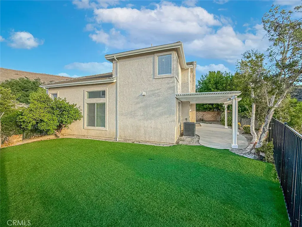 Upon entry, you are welcomed to a naturally lighted living room with vaulted ceilings and new wood flooring, leading to a dining room with a brass chandelier. The kitchen features a center island, recessed lighting, and a bay window offering a view of the valley and mountains. The attached family room features a fireplace, built-in speakers in the ceiling, and a sliding door leading to the backyard with a covered patio. The backyard offers a covered porch and spectacular views of the valley, mountains, and incredible sunsets. There is a side yard with artificial turf that is perfect for a kid’s play yard, courtyard, or a place to relax and watch the sunset.