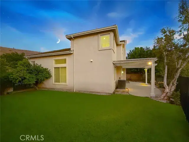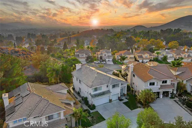 Upon entry, you are welcomed to a naturally lighted living room with vaulted ceilings and new wood flooring, leading to a dining room with a brass chandelier. The kitchen features a center island, recessed lighting, and a bay window offering a view of the valley and mountains. The attached family room features a fireplace, built-in speakers in the ceiling, and a sliding door leading to the backyard with a covered patio. The backyard offers a covered porch and spectacular views of the valley, mountains, and incredible sunsets. There is a side yard with artificial turf that is perfect for a kid’s play yard, courtyard, or a place to relax and watch the sunset.