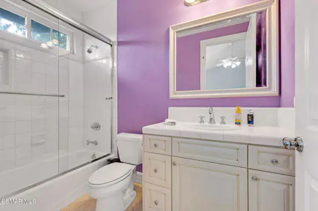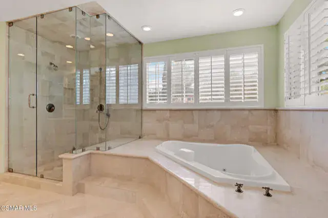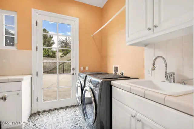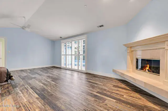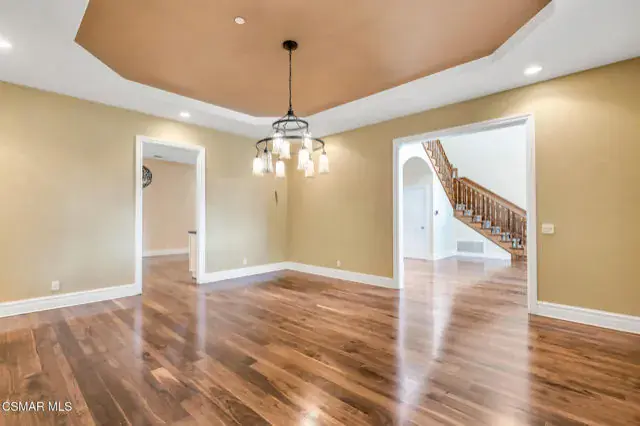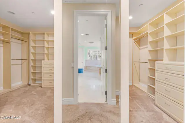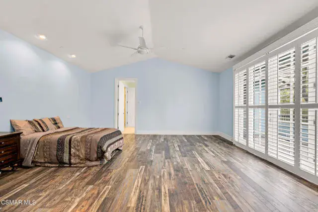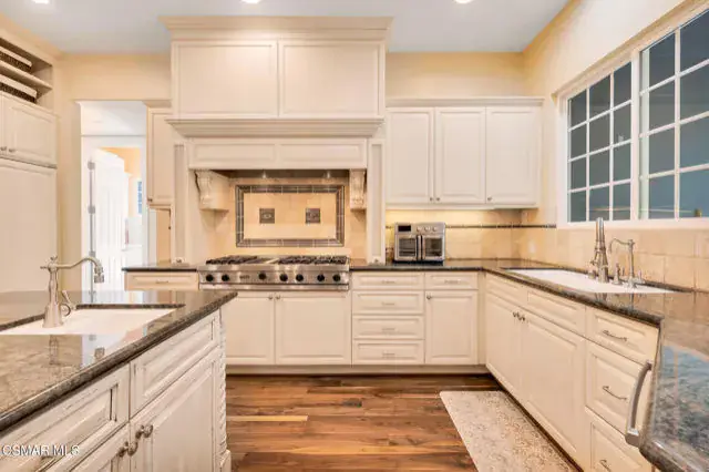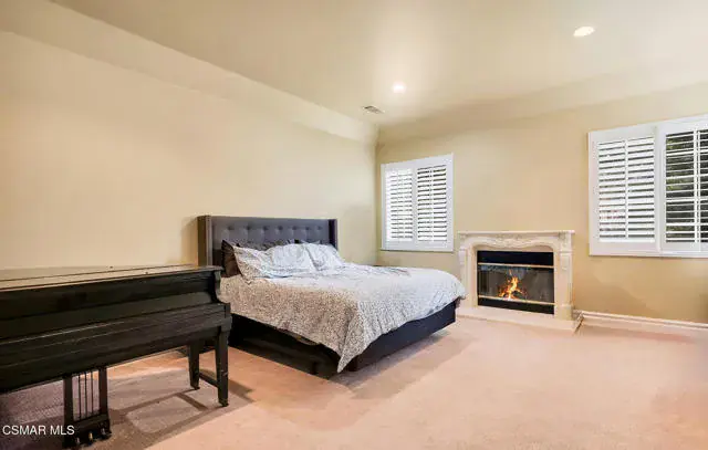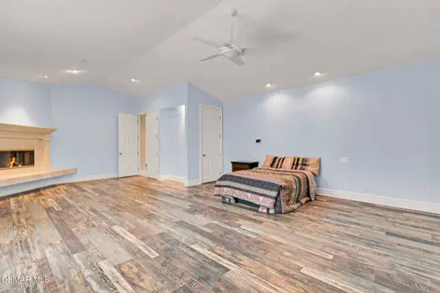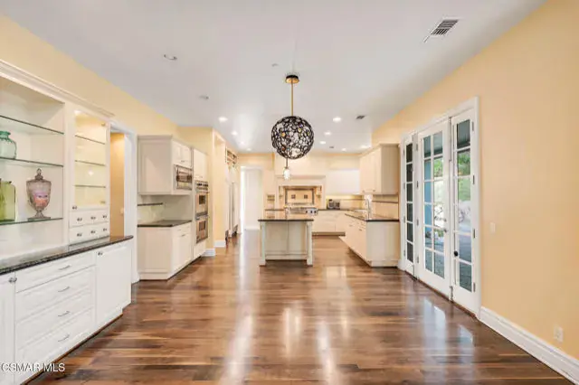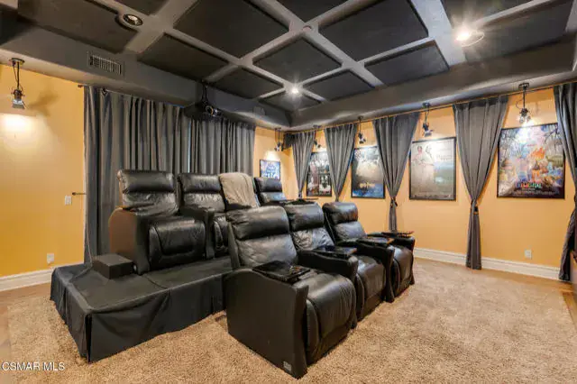 A rare offering in Simi Valley, this custom 6-bedroom, 6.5-bath estate crowns the end of a quiet cul-de-sac, presenting over 5,600 sq. ft. of refined living on a 25,000+ sq. ft. lot. Currently owned by a Hollywood producer who sought a private retreat outside the city, the estate has also hosted gatherings attended by movie stars, directors, and producers — a testament to its scale and entertaining appeal. The approach is framed by mature shade trees, lush landscaping, river rock accents, and a custom river rock mailbox. An extra-long and wide stamped concrete driveway with possible RV parking enhances curb appeal, while the custom double-door entry with leaded glass sidelights sets a welcoming tone. Inside, the foyer opens with real wood floors, soaring ceilings, and an artisan agate chandelier. To the left, a study/office with floor-to-ceiling custom built-ins provides the perfect setting for a home library or workspace, while still offering the versatility of a bedroom with ensuite bath. Nearby, French glass doors open to an additional room, previously used as a music room, ideal as a den, playroom, or creative space. The formal living room rises to 30 feet with abundant windows and a travertine raised-hearth fireplace, while French doors lead to the backyard. Off the living room, a dedicated theater room boasts a 210′ screen, Sony projector, blackout curtains, surround sound, and 7 reclining chairs — all included. The gourmet kitchen showcases two full-capacity Sub-Zero units–refrigerator and freezer, a Viking 6-burner cooktop with griddle and hood flanked by custom spice racks, a Viking microwave, Bosch dishwasher, abundant cabinetry with built-in storage nooks, and an extra-long granite island with travertine accents and pendant lighting. A butler’s pantry with sink, wine refrigeration, and walk-in pantry enhances functionality, while a built-in china cabinet and casual dining area add charm. A second bedroom with adjacent bath, laundry room, and guest powder room complete the lower level. Upstairs, an open loft-style landing creates a striking catwalk across the home, overlooking the living areas below and connecting the bedrooms. The primary suite offers a private retreat with a balcony overlooking the backyard, sitting area, fireplace, dual walk-in closets with organizers, and a marble bath with dual vanities, soaking tub, and steam shower with dual heads. Three additional ensuite bedrooms with closet organizers complete the upper floor. The backyard feels like a private park, with expansive lawns, stamped concrete patios, covered sitting areas, koi pond with waterfall and wood bridge, rose gardens, grapevines, and fruit trees — plus plenty of space to add a pool, greenhouse, or other features to fit your lifestyle. The spacious 3-car garage includes epoxy flooring, overhead storage, an updated electrical panel, two 220v outlets for EV charging, and a full-size safe. Energy efficiency is enhanced by a solar system paired with four Tesla wall batteries, designed to provide significant backup capability, including support for the home’s zoned A/C system. Additional features include three fireplaces, dual-paned windows with shutters, Nest temperature controls in every room, a recirculating water heater, a replaced sewer line, and fiber-optic connectivity for reliable high-speed internet access. Additional highlights include no HOA, a quiet neighborhood setting, and proximity to Lemon Park. Finishing touches include all artisan chandeliers and sconces handcrafted by Corbett. Blending custom design, thoughtful upgrades, and resort-style grounds, this estate is truly one of Simi Valley’s premier residences.