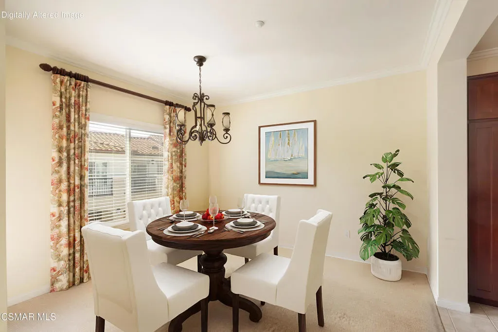 This home offers a wonderful set up, especially for Seniors. More spacious than other senior communities nearby, this home offers a large and light living area, dining room, spacious upgraded kitchen and a terrific balcony with views. The bedrooms and baths are generous and the laundry area in hallway is convenient. There are no steps. The deep single-car garage is easily accessible from the simi-private elevator just outside the front door. The home is on the second level so no one is above you and the community facilities of a pool, spa, barbecue area, club house and gym are all close by. This unit is near the rear of the complex in a quiet location. Grocery store and restaurants are next door with gated access.. Private golf course and the Reagan Library or minutes away. This is a 55+ Community.