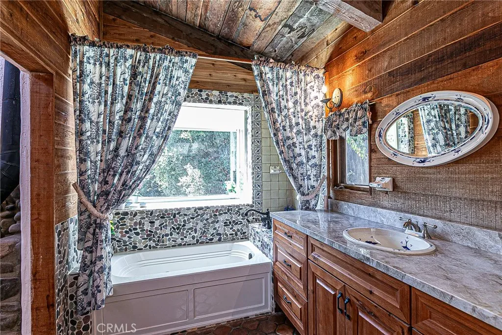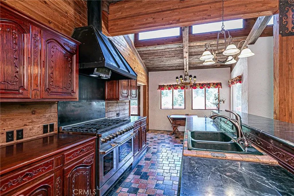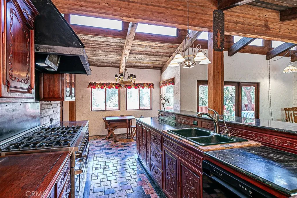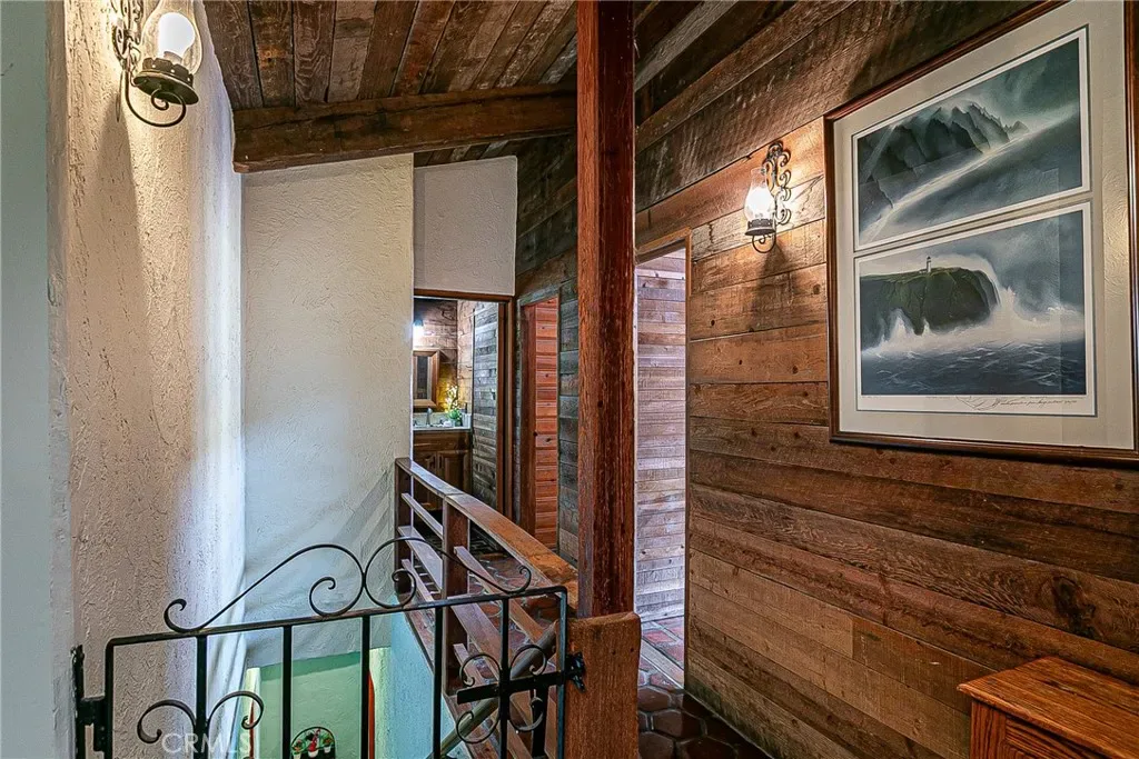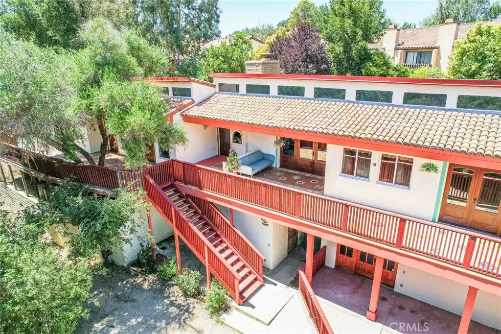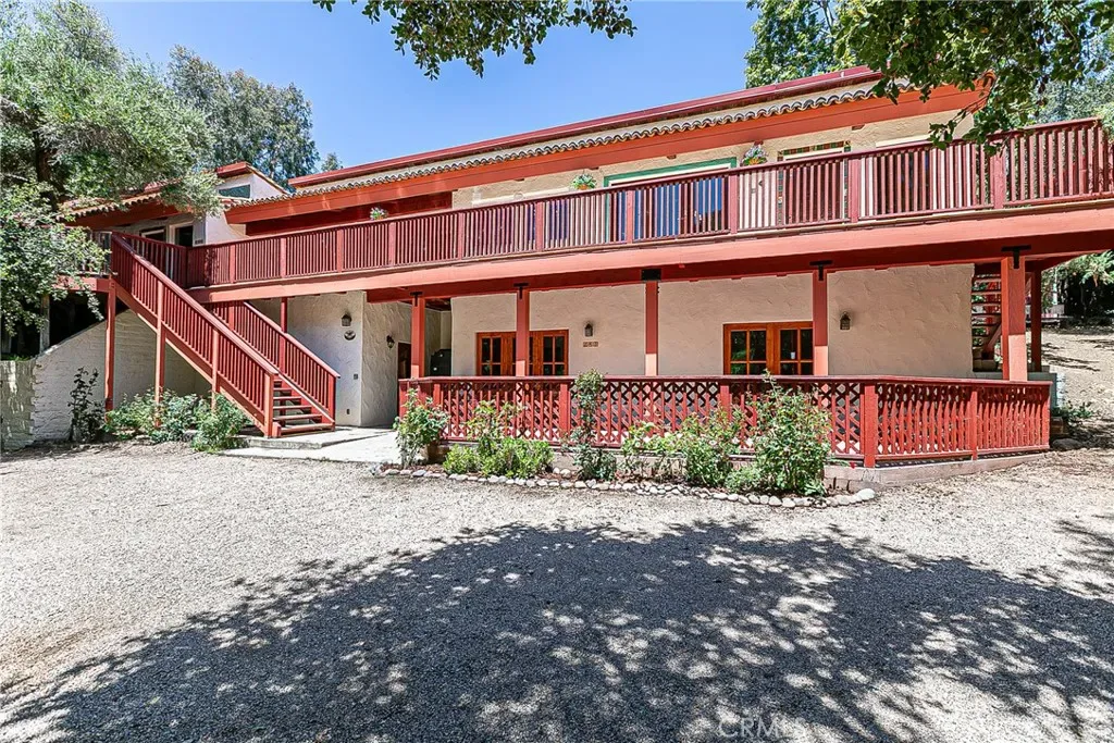 Discover a hidden hacienda nestled in the enchanting woods of Solvang, just moments away from restaurants, wine tasting, shops, parks & festivities. This colorful 2-story retreat is accessed via a private driveway, complete with your own bridge crossing your creek surrounded by a small forest of majestic oak trees. The living room boasts a cozy fireplace adorned with custom mantle & hearth. Experience the warmth of the beam ceilings made from wood sourced from a New Mexico mine, complemented by beautifully old-world textured walls. The custom kitchen is a chef’s dream, featuring solid carved rosewood cabinets, brand-new Z Line 8-burner stove, & new dishwasher & a spacious walk-in refrigerator, accessed from the pantry & custom access doors in the kitchen. Enjoy the breakfast nook or take advantage of the formal dining room with space for a 12-foot table. The hacienda features 5 inviting bdrms, each with exterior door leading to an expansive deck. With 3.5 baths, this home is designed for comfort & convenience. Retreat to the primary suite, complete with wood-burning stove & a luxurious new jacuzzi tub. Downstairs, a recreation room, the 5th bedroom, a utility room & a wine cellar await your enjoyment. Additional amenities include a New Roof, New stackable washer & dryer & a 50-gallon gas water heater. This beautiful 1-acre lot is fenced for horses. Don’t miss your chance to own this exceptional property; schedule a tour today & experience the magic yourself!