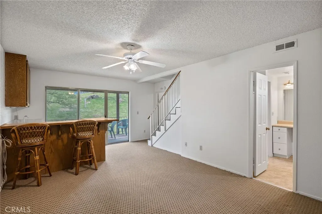 Peaceful and tranquil Stallion Springs Condominium. Enter through the front door to a light and bright great room with brick fireplace and sliding door to the upper deck. Main level kitchen with dining area and guest half bath, along with the great room. Lower level bedroom, full bath and a game or hobby room with wet bar and slider for lower deck access. Upper level primary bedroom, 4 unit bath plus a bonus loft perfect for office or a study. Double car garage with new opener and guest parking nearby. Awesome views from almost every window. This home could use a little updating but perfect for family home or weekend getaway.