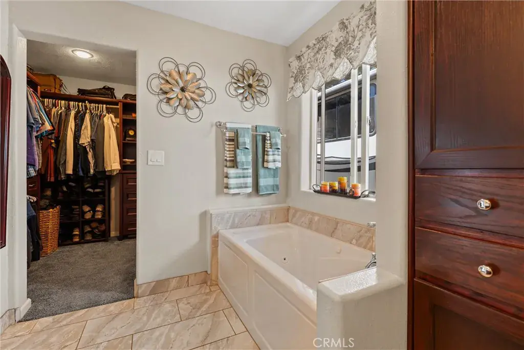 The Main Bedroom with En-Suite features a jetted tub, two sinks, large walk-in shower and walk-in closet with built in drawers and storage. The attic offers partially decked space for additional storage.