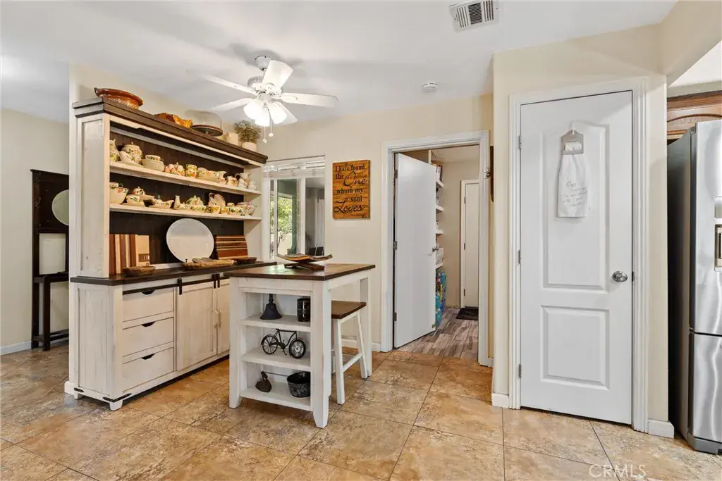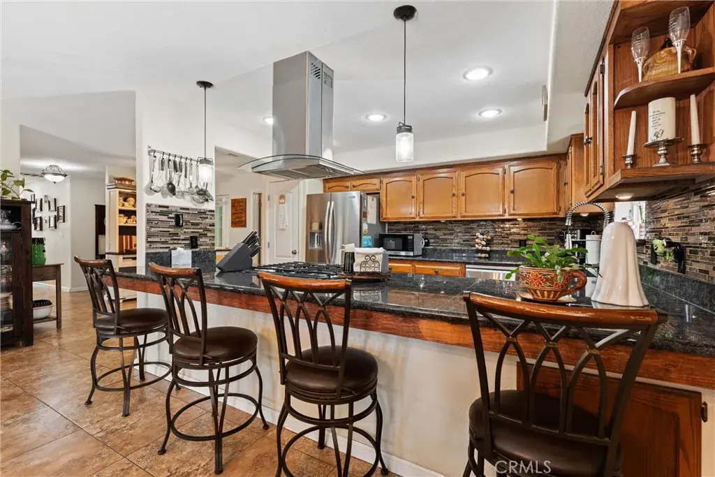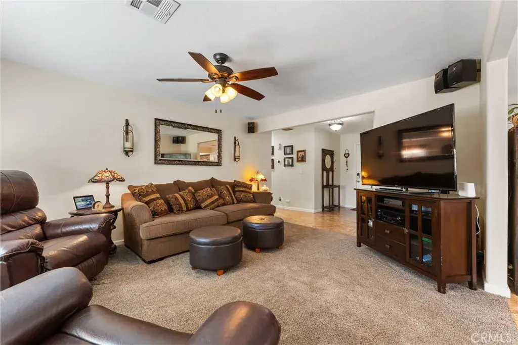 The property is equipped with RV parking and full hookups, two storage sheds, and is backup- generator ready. Inside, you’ll find a spacious laundry and pantry area just off the kitchen, which features updated appliances, sleek cabinetry with pull-out drawers, and in the family room a cozy natural gas stove perfect for chilly winter evenings.