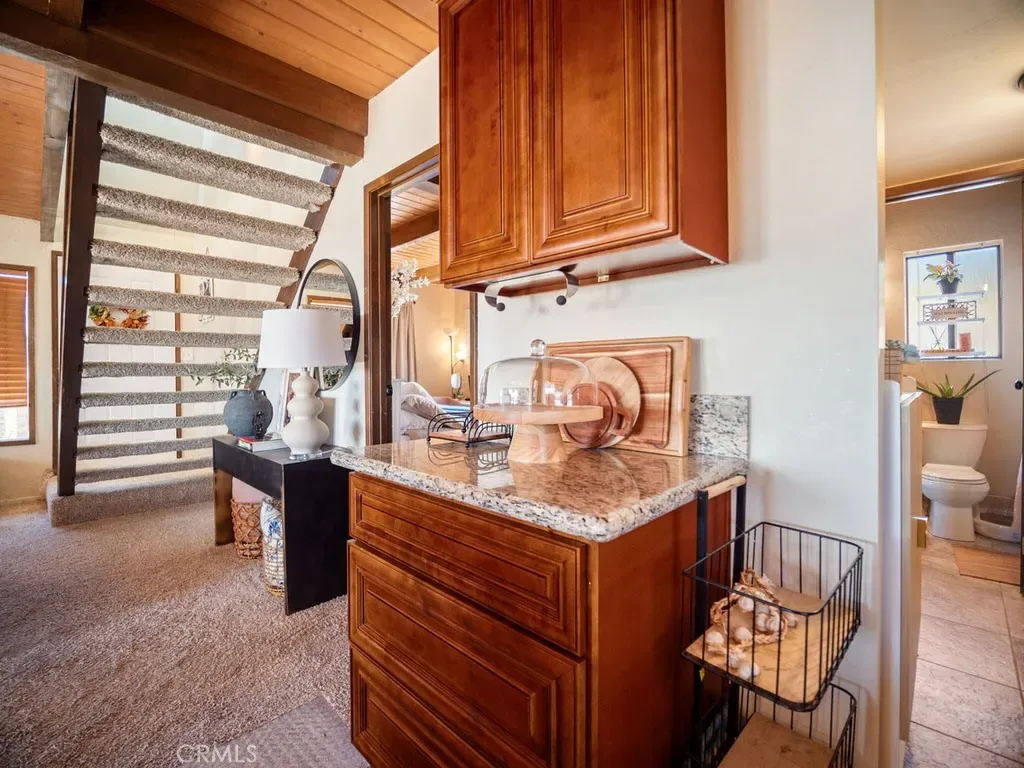 Country charm on 2.58 acres! This updated 1,140-sq-ft, detached two car garage two-bed, two-bath gem boasts an open floor plan with windows showcasing stunning valley views, and beamed ceilings. The kitchen features wood cabinets, solid-surface counters, updated fixtures, and stainless-steel appliances. Cozy up by the fireplace for movie nights or gatherings. Retreat to two spacious primary suites with property views, beamed ceilings, and large closets. The upstairs loft with wet bar opens to a balcony—perfect for sunset cocktails. Baths feature newer flooring, granite, and stylish fixtures. Outside: room for gardens or a starlit fire pit. Plus: detached garage, ample parking, and full laundry. Community amenities: equestrian riding & hiking trails, campground, Whiting Center, parks, sports complex, nature paths for walking/strollers/bicycles, Cub Lake, leash-free dog park, fuel & store, 25-yard pool, tennis/pickleball, two lakes (Four Island Lake & Cub Lake—event-ready), plus dining at Mulligan Room & The Oaks Restaurant. Just 15 minutes to Bear Mountain, Oak Tree Country Club, Bear Valley Springs, Triassic Vineyards, and shopping. Claim your nature-filled paradise on Paramount Drive