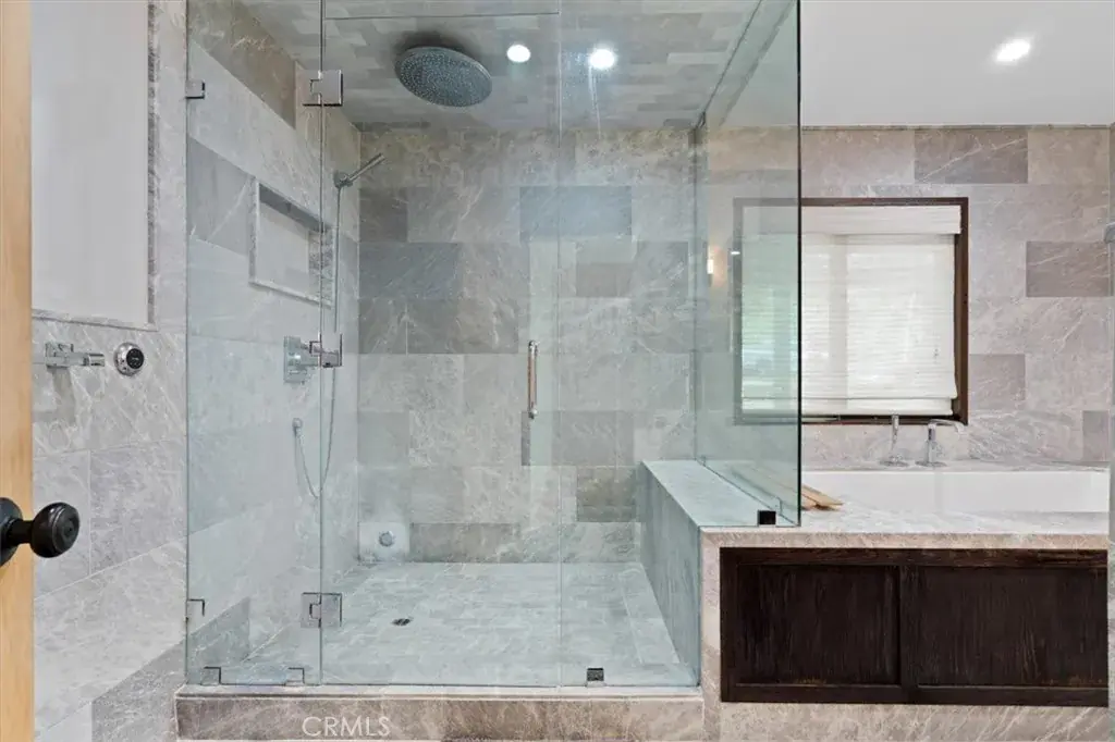 The chef’s kitchen features stainless steel appliances, a 48” dual oven with griddle, and a cozy breakfast nook. The spacious primary suite offers private deck access and a luxurious bathroom with Nordic Grey marble, a jacuzzi tub, a steam and rain shower, and heated floors. A separate walk-in closet provides plenty of space and storage.
