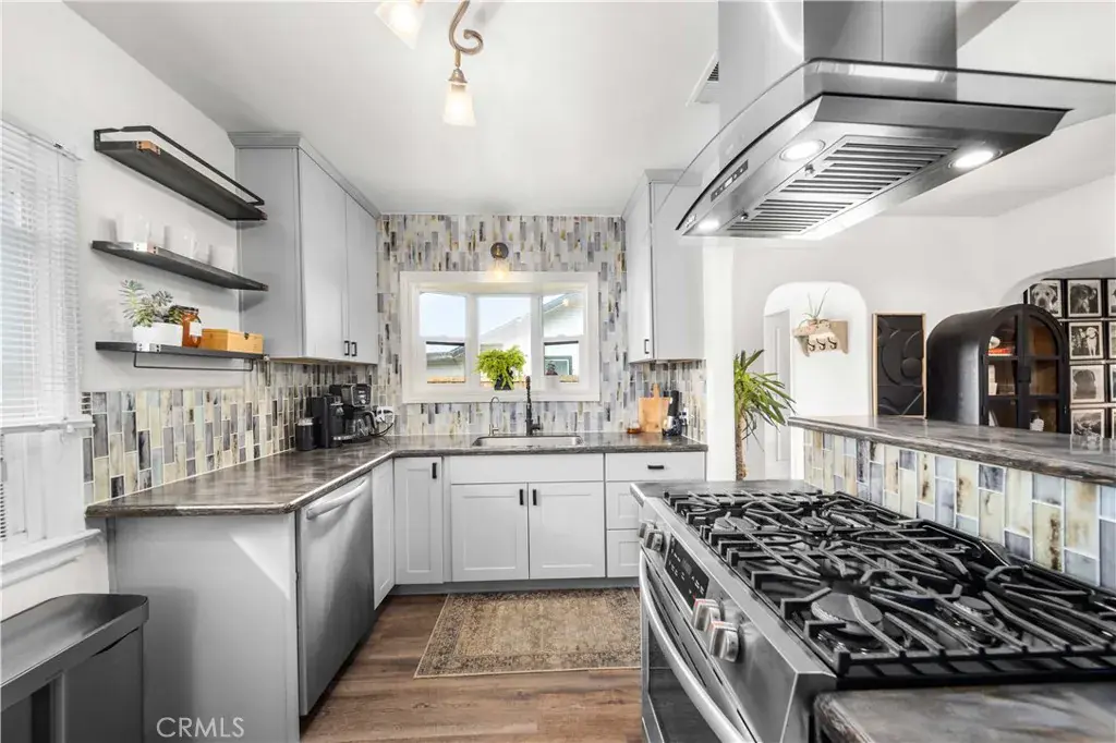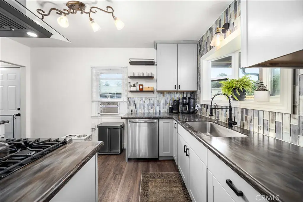 Updated cottage in the historic downtown area of Tehachapi. Full of charm and sophistication! Renovated interior and exterior! This home has a split wing floor plan with a spacious family room/dining room combination, laminate flooring throughout, newer windows and newer water heater. The kitchen has custom cabinets, farm house sink, stone counter tops, and newer stainless appliances. The primary bedroom has an electric fireplace and an adjoining bathroom with updated cabinets, stone counter and a large shower. The secondary bedrooms share an updated full bathroom. The exterior has beautiful new front fencing and was recently painted. The rear yard has a gazebo and a workshop and is fenced and cross fenced. Walking distance to downtown and an easy commute to the 58 freeway too! Don’t wait too long to see this charming house that’s conveniently located in the heart of downtown Tehachapi!