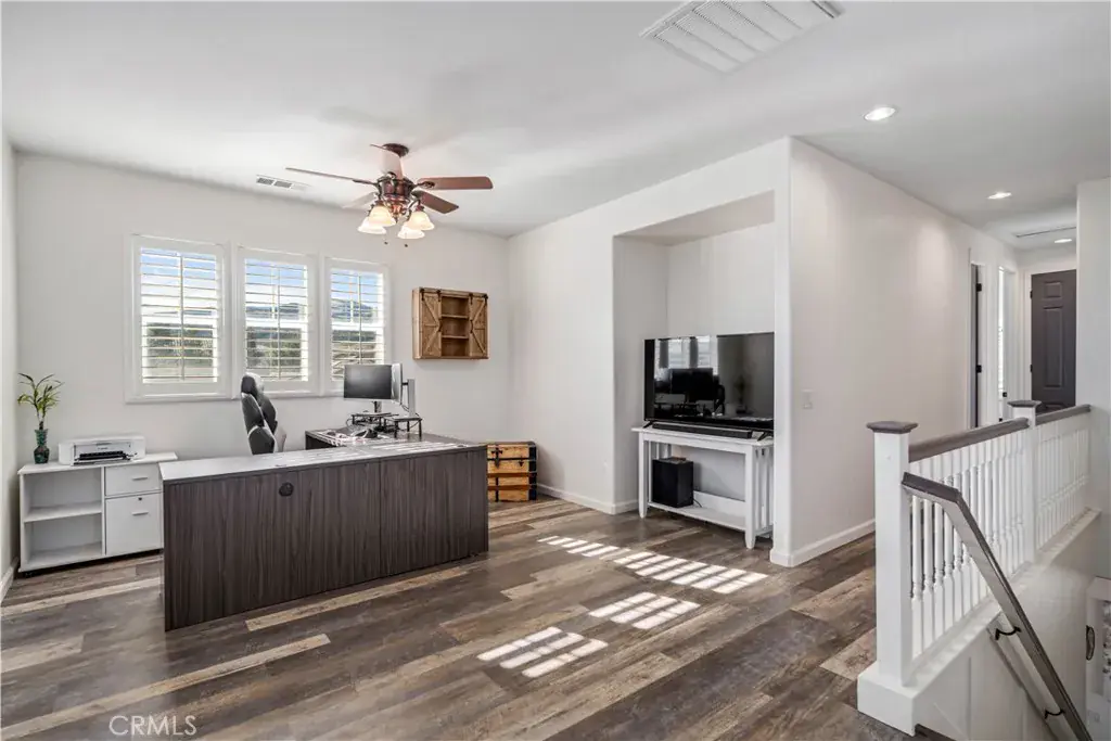 Upstairs you are immediately greeted by an open loft, with stunning views of the mountains and windmills, that is ideal flex space for office/teen retreat/gaming area. The generously sized primary suite is a true retreat with mnore stunning views and made complete with an updated spa-inspired bathroom featuring dual sinks, a vanity area, granite counters, an oversized walk-in shower, separate soaking tub with custom tile work, and a large walk-in closet. Secondary bedrooms are all spacious and well-appointed. Even the staircase has been upgraded with solid-surface risers, adding a high-end touch.