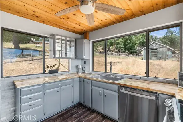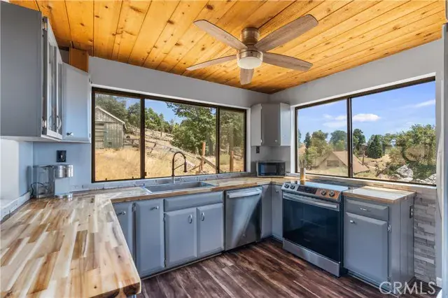 Step out from the main living room onto a spacious deckthe perfect spot to relax and take in the panoramic views. The cabin-style charm has been fully updated, offering a perfect blend of rustic and refined. Detached two-car garage and solar system included (buyer to assume). Gated community amenities and peaceful mountain living complete the package.