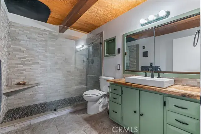 Stunning mountain views and the charm of a modern cabin! This Bear Valley Springs beauty is perched above the valley on over an acre and has been remodeled from top to bottom. With over 1,700 sq ft of living space spread across three levels, you’ll find two bedrooms and a loft on the top floor, a main-level primary suite, kitchen, dining, and living area, and a lower-level bonus room with laundry and a separate entrance.