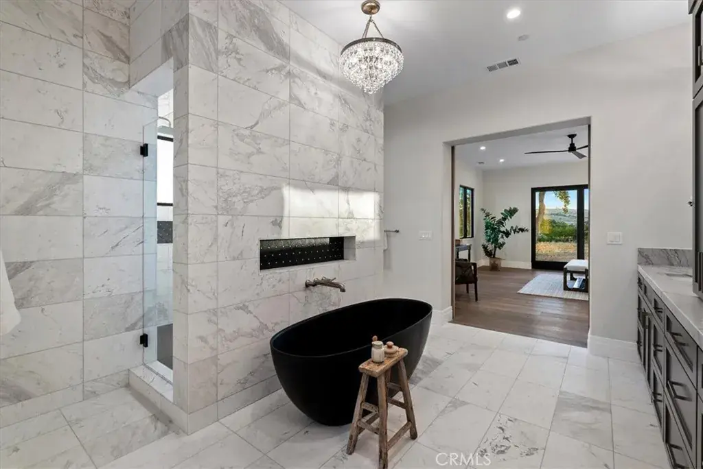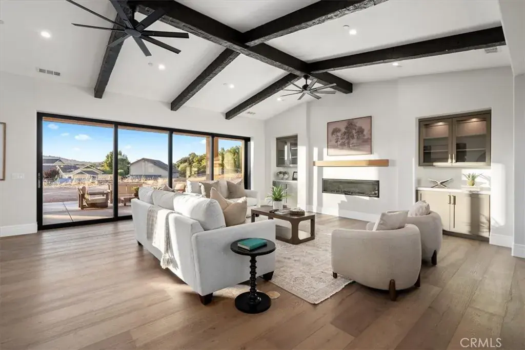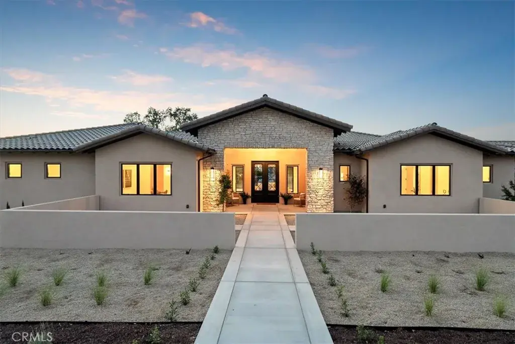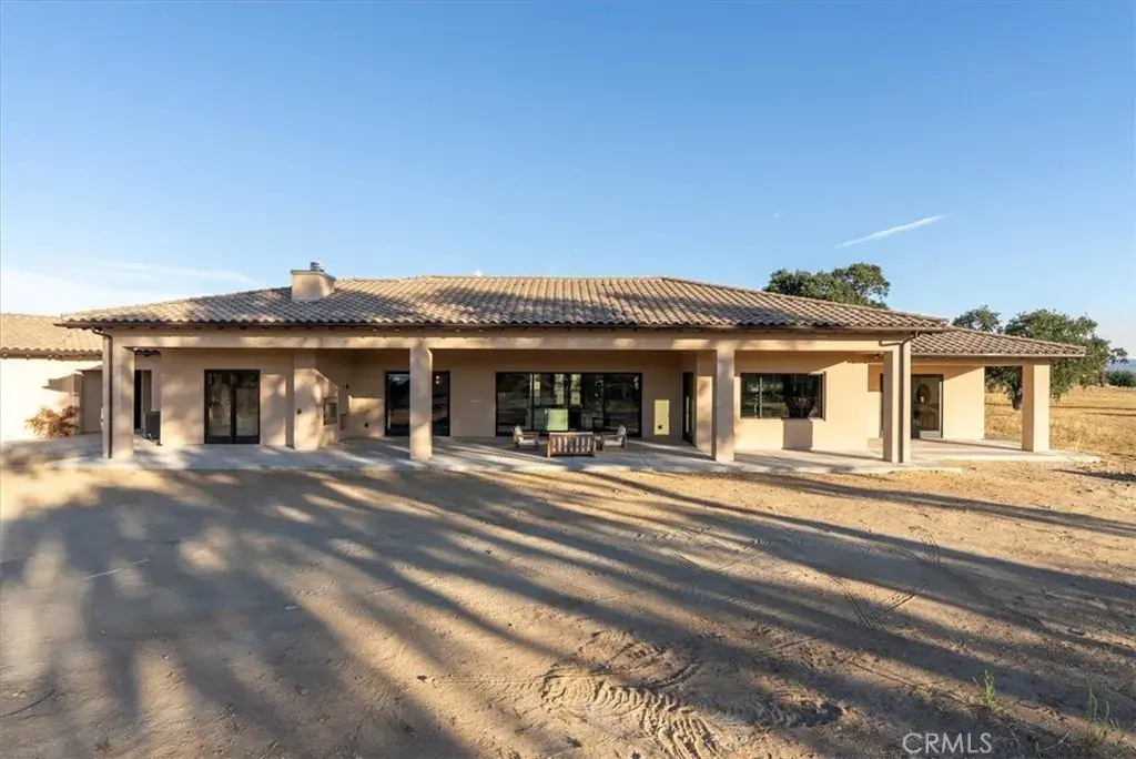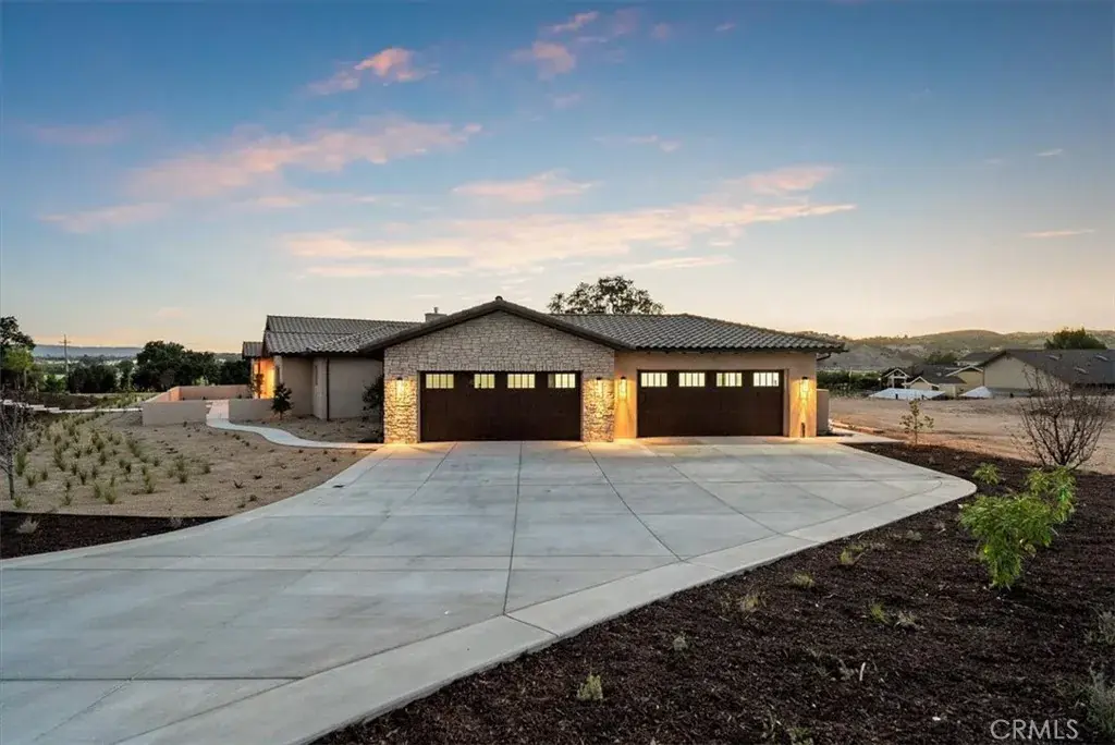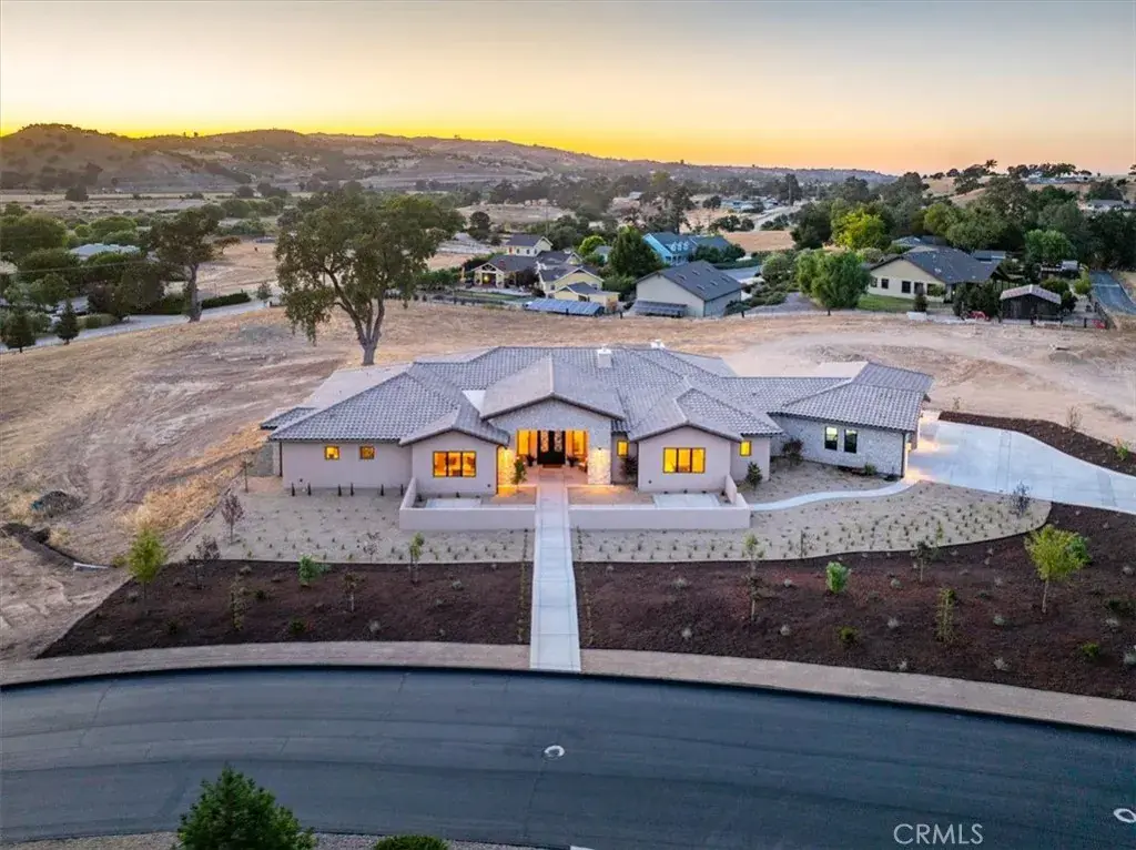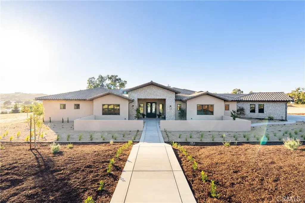 Located within the exclusive guard-gated community of Santa Ysabel Ranch, this brand-new single-level residence offers a rare combination of luxury, privacy, and the Central Coast lifestyle. Residents enjoy unmatched amenities including 24-hour security, tennis and pickleball courts, and miles of scenic walking trails. Spanning approximately 4,155 square feet, the thoughtfully designed floor plan features three bedrooms, a dedicated office, three and a half bathrooms, a three-car garage and approved plans for an ADU. The landscaped front yard sets the tone, while the expansive backyard offers endless potential to create your dream outdoor oasis. A grand entry welcomes you into the stunning living room where vaulted ceilings with exposed beams, a gas fireplace, and sliding pocket doors create a seamless indoor to outdoor living experience onto the covered patio complete with its own fireplace for year-round enjoyment. The gourmet kitchen is a showstopper with two oversized islands each with prep sinks, bar seating, a wine fridge, high-end appliances, and designer finishes. A dedicated built-in wine display and bar area elevate the entertaining space, while the spacious walk-in pantry adds function and convenience. The luxurious primary suite features a private patio, a spa-inspired bathroom with dual sinks, a freestanding soaking tub, a custom-tiled shower, and a generous walk-in closet. The family room, connected through the double-sided living room fireplace, offers additional gathering space with comfort and style. Showcasing exceptional craftsmanship, designer finishes, and unmatched privacy, this home is an extraordinary opportunity to own in one of Paso Robles’ most coveted communities while still having the freedom to design your ultimate backyard retreat.