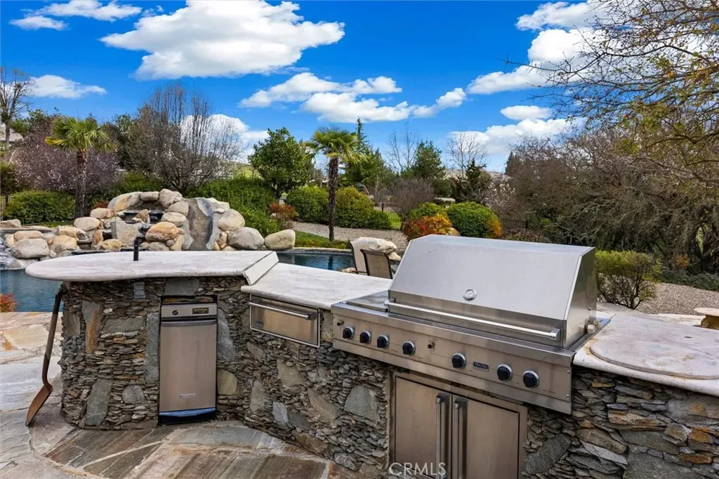 Spectacular home in the exclusive Spanish Lakes gated community. The square footage totals 4140sf that includes the additional covered patio that is enclosed by 8’ X 40” expansive glass doors that frame the gorgeous backyard pool and waterfall; with its own heating unit and gas BBQ, this room can be enjoyed year around. The entry courtyard with its graceful fountain is a great place to sit back and enjoy the countryside. This home is a truly versatile and elegant home. The floor plan is plentiful yet personal, great for entertaining. Off the tiled grand foyer is a spacious office with double door entry. The formal dining room opens to the living room with a grand fireplace. Gorgeous wood flooring. The half bath is conveniently located down the hall. The beautiful and especially spacious Owner’s Suite is located on the opposite wing from the other 3 bedrooms providing privacy and peacefulness. The fireplace and bay window add charm, with a French door out to the patio, views of the pool and lush landscape. The bath has 2 separate vanities. 2 generous closets. The kitchen work space is amazing with 2 sinks and an abundance of counter space and cabinetry. Sub-Zero refrigerator/freezer. The Sub-Zero wine/beverage refrigerator is always a plus, cooling over 140 bottles! The kitchen opens to the dining nook & great room with a cozy fireplace. 2 guest bedrooms share a bathroom, with the 3rd being an ensuite bedroom. A spacious laundry room with a sink and lots of storage gives this room the nice option of a Butler’s Pantry. Central vacuum system, water softener and water osmosis system. Dual zone heating/air systems. Tankless water heater. The 3 car garage is extra deep, with an attic space large enough to stand! The backyard is very private with one side bordering dedicated open space complimenting the mature landscaping around the infinity pool which creates a true oasis. It wouldn’t be complete without the outdoor shower! There is an outdoor kitchen, firepit, stone patio and walkways. Owned Solar for the home with a separate owned solar for the pool. The Spanish Lakes private community offers walking trails and a park on one of the three lakes where neighbors meet for socials. This community has a rural feel but is minutes from Downtown Paso Robles and Templeton.