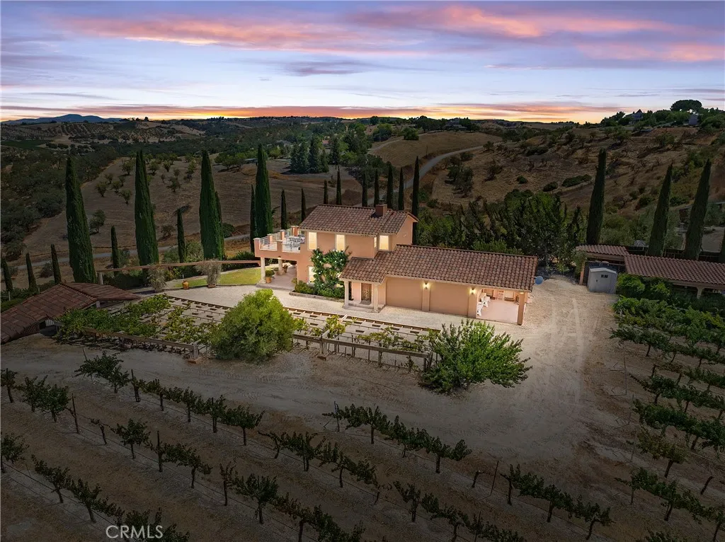 A captivating wine country estate with income-producing opportunities in Templeton. Set on 38± acres with 25± acres of premium Cabernet Sauvignon and Merlot, this property offers multiple potential revenue streams through short-term rentals, private events, and viticulture. Two custom homes span approximately 5,000 sq. ft. The luxurious Tuscan-inspired main residence features 4 bedrooms and 4 bathrooms, while the second home, built in 2000, offers 2 bedrooms and 1.5 bathrooms. Ideal for guests, caretakers, or vacation rental use. Both homes are on a single parcel, with a second parcel included in the sale. Gated and private, the grounds feature sophisticated design details, hand-painted murals, and remarkable vineyard views. Multiple patios and fountains provide a tranquil setting for elevated indoor-outdoor living. Previously operated as an in-demand wedding venue and short-term rental, this is an extraordinary chance to experience the best of wine country living while building long-term value in Templeton.
