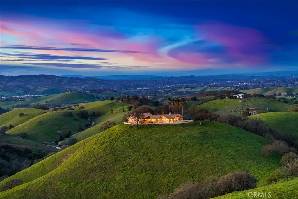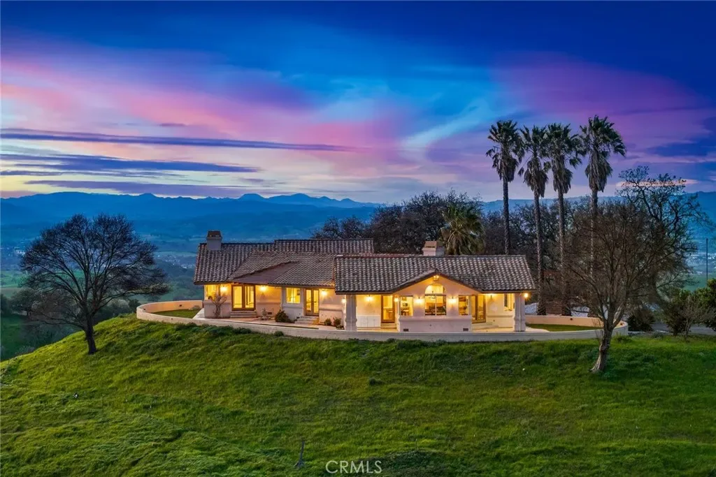 Welcome to Oak Tree Vista, a hilltop sanctuary perched on nearly 20 acres of pristine Templeton hillside defined by breathtaking, 360-degree views that stretch as far as the eye can see. This estate offers a rare combination of privacy, scale, and some of the most awe-inspiring vistas on the Central Coast. Accessed via a private electric gated entrance and a fully paved driveway, Oak Tree Vista makes you feel as though you are living inside a landscape painting, with every window framing a different piece of the horizon. The residence itself is a thoughtfully designed 3-bedroom, 2-bathroom single-level home featuring a seamless open floor plan and dramatic vaulted ceilings that draw the eye toward walls of glass.