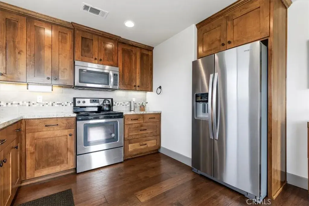 The home’s interior has been beautifully updated. There are granite counter tops in the kitchen and bathrooms and engineered real hardwood floors throughout. One bedroom and one bath, kitchen and living room upstairs and a 1 bedroom 1 bath and Laundry room in the 1st level. Permits unknown for any additions, but are beautifully done. The additional bedroom, bath and laundry room is not a garage conversion. There is a 3 car garage and a huge workshop on the same level.