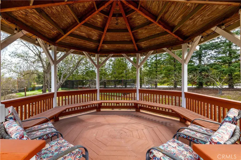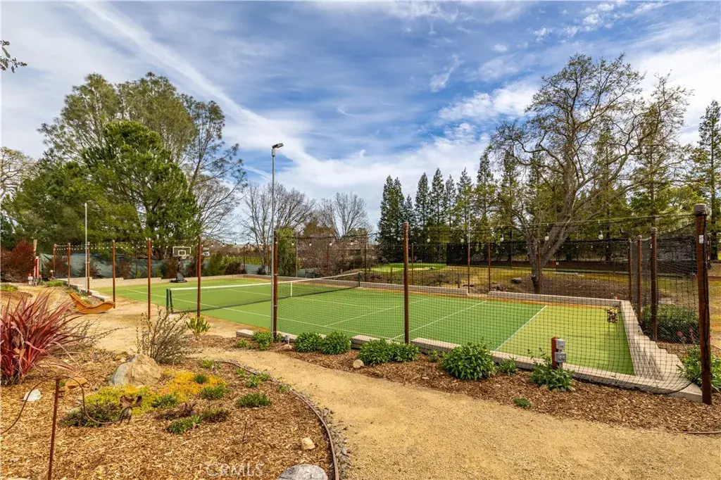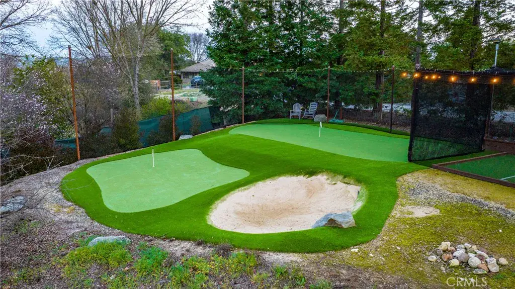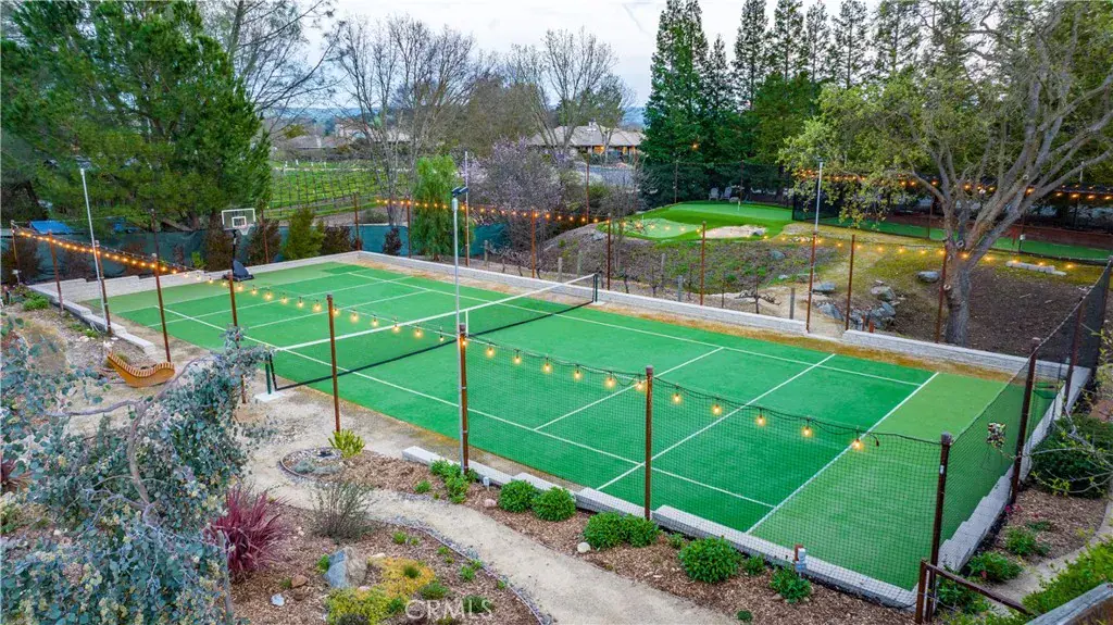 The backyard is truly exceptional, designed for both recreation and relaxation. Enjoy a private tennis court, a small putting green, and a batting cage — creating a unique space for sports enthusiasts and entertaining alike. A detached outdoor gazebo provides the perfect vantage point to overlook the grounds and unwind while taking in the serene surroundings. Beautiful landscaping enhances the property throughout, supported by extensive sprinkler systems, while a raised garden bed offers an ideal opportunity for anyone with a green thumb to cultivate their own garden oasis.