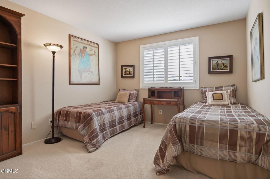 Welcome to your dream home in the prestigious guard-gated community of Rancho Conejo Village in Thousand Oaks, California! This beautifully updated 4-bedroom, 3-bathroom residence offers modern comforts, thoughtful design, and an exceptional lifestyle in one of the Conejo Valley’s most desirable neighborhoods.Step inside to discover elegant vinyl plank flooring in the living room, custom shutters throughout the home, and abundant recessed lighting that creates a bright, inviting atmosphere. The heart of the home is the updated kitchen, featuring sleek quartz countertops, a convenient kitchen island, and newer stainless steel appliances–perfect for everyday meals or entertaining. The kitchen and family room boasts durable Italian porcelain flooring, while a cozy gas fireplace in the family room adds warmth and ambiance.The flexible floor plan includes a downstairs office (or potential 5th bedroom) with an adjacent guest bathroom complete with a shower–ideal for multi-generational living, in-laws, or out-of-town visitors. Upstairs, the oversized master suite is a true retreat, complete with his-and-hers closets (including a spacious walk-in), dual sinks in the master bath, and a relaxing tub/shower combination. The additional three bedrooms share a convenient Jack-and-Jill bathroom with dual sinks and a shower. Upstairs bedrooms feature comfortable carpeting for added coziness.Community amenities enhance your daily life with two sparkling pools and spas, beautifully maintained open spaces, and incredibly low HOA fees that provide excellent value and security. Location is unbeatable: Just steps from Rancho Conejo Playfields (with sports fields, tennis courts, playgrounds, and picnic areas) and the Arroyo Conejo Trailhead for scenic hiking and nature trails. Top-rated Conejo Valley Unified schools are nearby, along with parks, shopping, dining, and convenient freeway access for commuting to Los Angeles or beyond.This turnkey home combines modern upgrades, versatile living spaces, and the security of 24-hour guarded gates–ready for you to move in and start enjoying the best of Thousand Oaks living. Don’t miss this rare opportunity in Rancho Conejo Village! Schedule your private showing today.