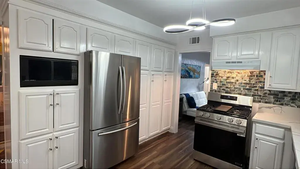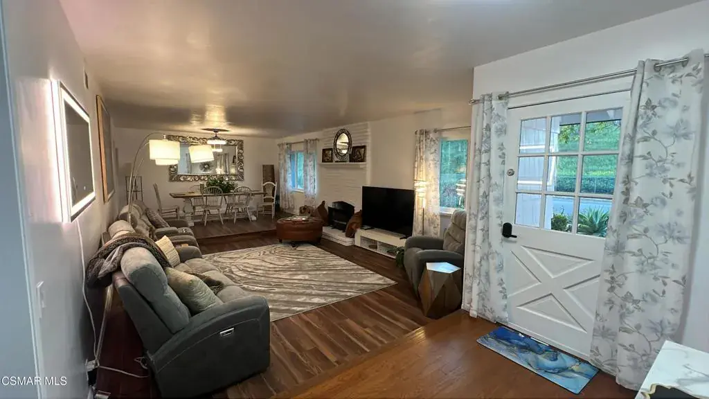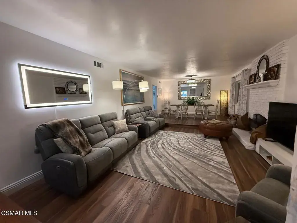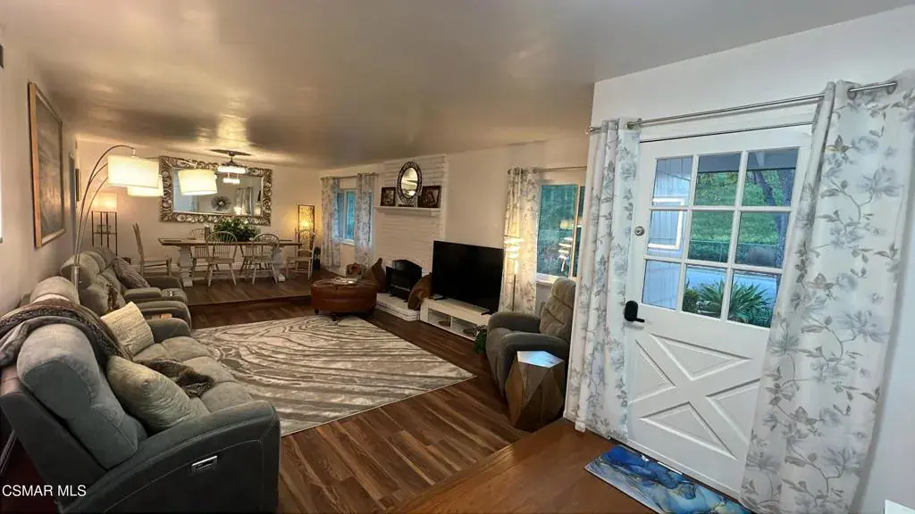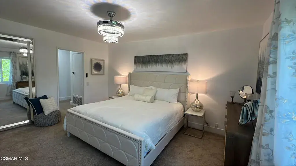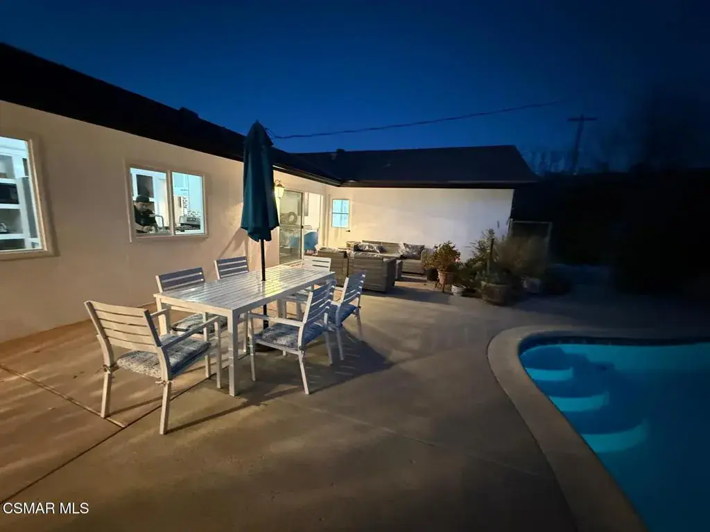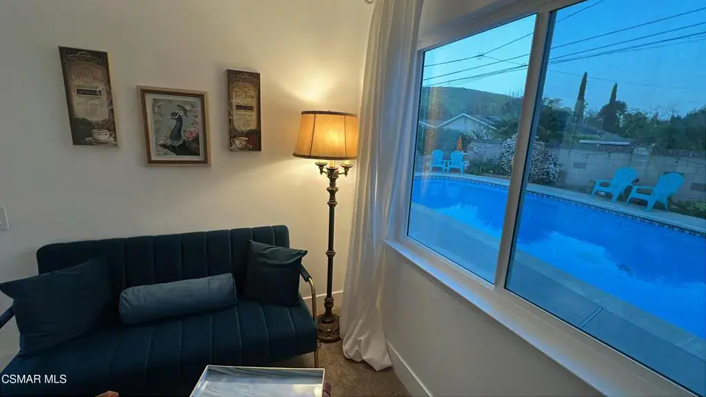 Fully Furnished & Fully Equipped & Ready Move-In! Gorgeously Remodeled Single-Story Home in the Heart of Thousand Oaks- Close to Everything! The Front of Home overlooks Peaceful Hillsides. Feel as if YOU have been Transported to Another World of Luxury in Your OWN Private 1-STORY Mid-Century Style Home with 6 Spacious Bedrooms, Remolded Retreat! Sparkling Breathtaking Pool. Mesmerizing Backyard with Privacy & Large Fruit Tree. The Open Space will be a Recreation Game Room with Game Tables, Swing chairs, dining etc. Views of the Trees and climbing Plants out each window. Enter this comfortable Home to find a Flowing Floorplan to the Spacious Living Room with Floor-to-Ceiling Gas & Wood-burning Fireplace, Formal Dining Room, Gourmet Kitchen & Family Room with Sliding Doors leading to the Sparkling Swimming Pool! Brand-New Vinyl Windows throughout keeping the home nice and warm in winter & cool in Summer!Eat-In Kitchen & Reclining Sofas Make for a comfortable conversation while enjoying your Culinary Experiences together. The Spacious Fully Remolded Kitchen has huge windows overlooking the Large easy-entry Pool. The sliding glass doors of the family room overlook the pool. Spacious White Cabinetry with newer appliances in the gourmet Eat-In kitchen make for intriguing conversations while Dining & enjoying the peaceful surroundings. The formal dining room has an elegant ceiling fan and creative lighting, including transparent ceiling fans for your comfort year-round. Luxurious Living Abounds in this exquisitely Remolded Home in the Heart of TO close to Los Robles Hospital, CLU, Home Goods, Toppers Pizza & Pokeland & a lot more Shopping & local Restaurants, Starbucks, Banking, & more convenient essentials nearby.The Grand Master Bedroom has it’s own private Bathroom & overlooks the peaceful hillside & nature.On the other side of the Home enjoy your own private entrance from the pool leading to another large Bedroom Suite & Bathroom. It also has a pocket door separating the kitchen from the bedroom and garage areas for more privacy. This large bedroom also has a sitting area. The 5 additional bedrooms are very spacious as well & designed including 3 King-Sized beds, desks for in-home workspace, mirrored closets, with a walk-in closet in the master bedroom & an electronic fireplace, jazzy furniture and mechanical lounge sofas. The home has a very large laundry room with walls of storage cabinets & a door leading out to the pool area.Plenty of Hillside Views Abound from the Peaceful Backyard. Choices Abound when it comes to Outdoor Entertaining spaces with Sweeping Patios, BBQ Grill. Superb Succulent Gardens surround & adorn the front of the house. New Exterior Paint & Majestic Stonework make for the most attrative Curb appeal of this Home , Newer garage doors & Gardens are just a hint of the Magic that Awaits inside this gorgeous home. If you are dreaming of a laid-back lifestyle, look no farther! This Renovated 6 BEDROOM residence with Nature surrounds will check off every box of your must-have features. Imagine relaxing after a day of hiking or swimming, lounging at the pool with serene landscaping. With everything you could ever Imagine needing at your fingertips, there’s no need to sacrifice convenience when relishing this luxurious lifestyle! Enjoy!