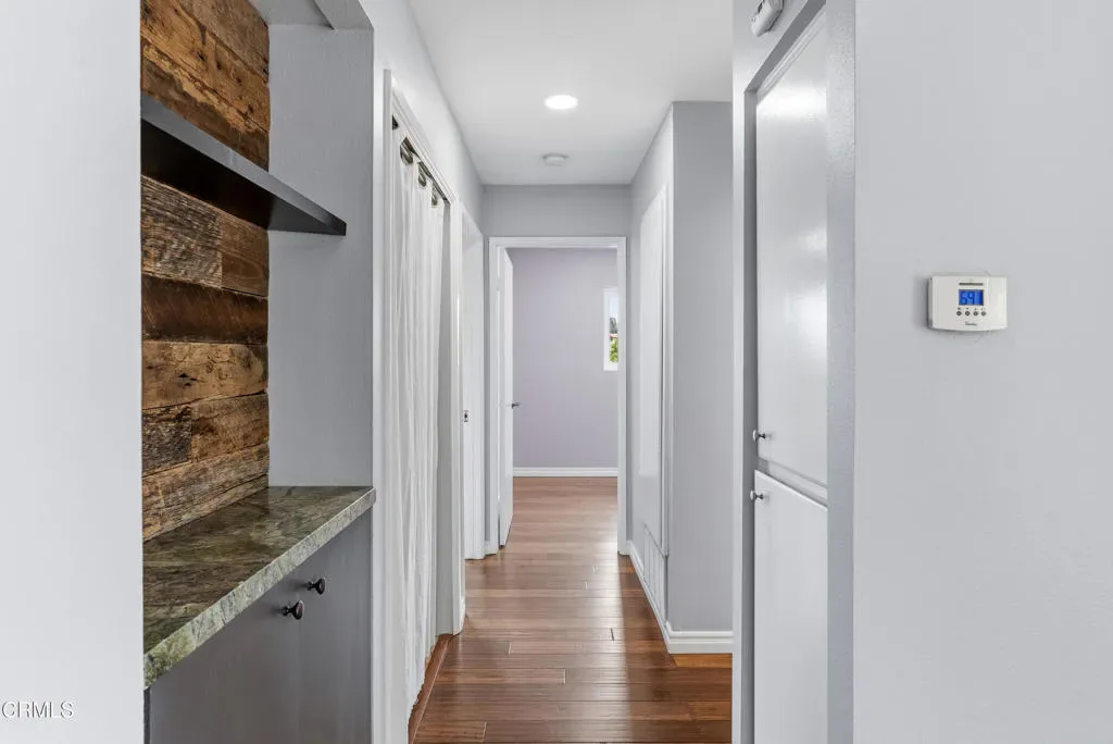 This tucked away upper-level condo in downtown Thousand Oaks offers a functional layout, spacious interiors, and privacy. The open-concept living and dining area features wide plank wood flooring, neutral tones, and sliding glass doors that lead to a private balcony, ideal for morning coffee or evening unwinding.The kitchen is bright and practical with ample cabinetry, granite countertops, and a skylight that brings in natural light throughout the day. Adjacent dining space connects seamlessly to the living area, creating an easy flow for everyday living or entertaining.Both bedrooms are generously sized with large closets, while the primary suite offers balcony views and added storage. The bathroom has been updated with clean, modern finishes for a fresh, move-in ready feel.Additional highlights include interior laundry area, recessed lighting, multiple storage options throughout and TWO assigned parking spaces. Located just minutes from shopping, dining, parks, and top-rated schools, this is an excellent opportunity for first-time buyers, or anyone looking for low-maintenance living in a central Thousand Oaks location.