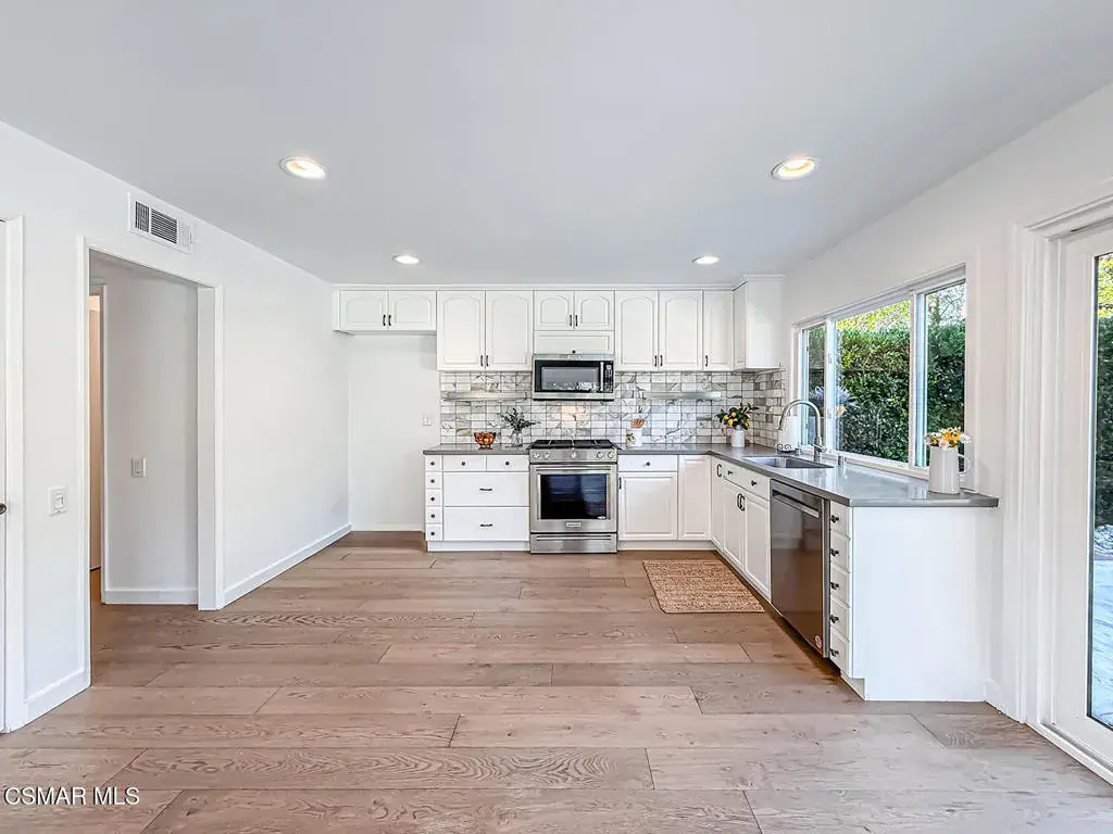 Luxury Living that truly has it all! Nestled on a large, private corner lot in the sought-after Oakbrook Highlands community of Thousand Oaks. This home offers space, privacy and is filled with abundant natural light throughout. Step inside this freshly painted and beautifully remodeled, 3 Bedroom, 2. 5 Bath home with 1,740 sq ft, offering a POOL, SPA, Firepit and outdoor Cabana. Spacious Living Room with a Custom Stone Fireplace, Vaulted Ceilings, and Recessed Lighting and beautiful REAL Oak Hardwood floors throughout. Kitchen with Stainless Appliances, Quartz Counters and slider to backyard. Upstairs: generous Primary Suite includes huge walk-in closet, outdoor patio with views and updated attached bath. Two large secondary bedrooms with shared remodeled hallway bathroom. Private backyard with lush landscaping and located in the highly rated Conejo Valley School district, Ladera Stars Academy Elementary and Westlake High School. Nearby shopping center with Gelson’s, Starbucks, Vons and easy access to the 23 and 101 freeway. This home combines comfort, style, and location, don’t miss the opportunity to own in one of Thousand Oaks’ most desirable communities.