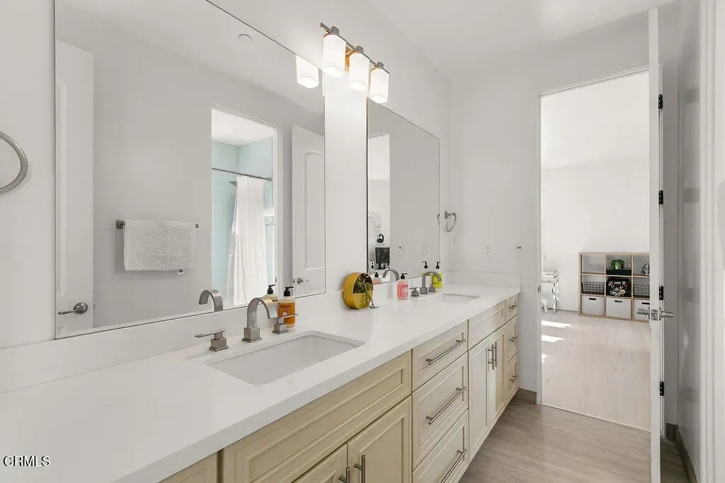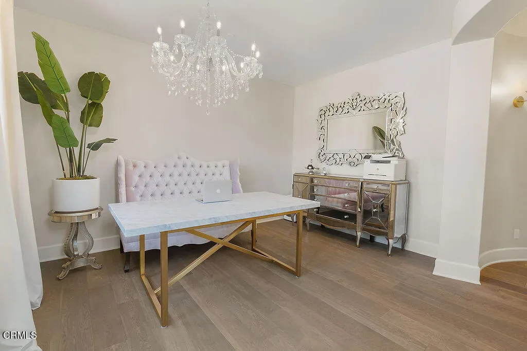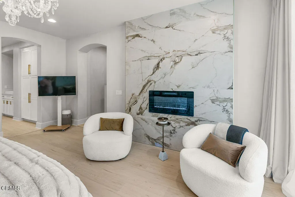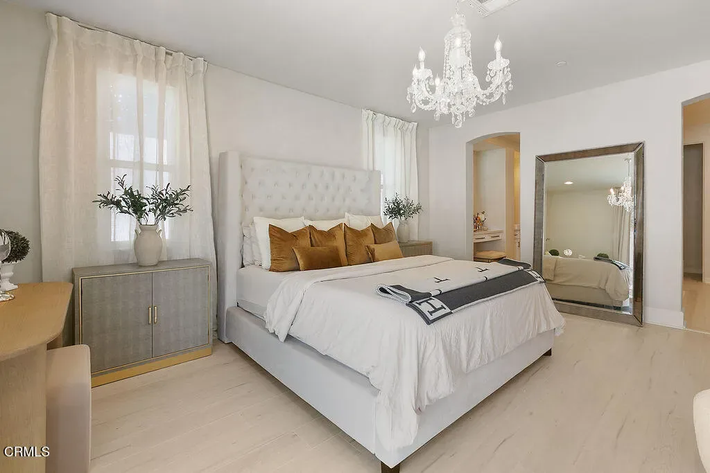 It’s the lifestyle you deserve with the primary bedroom downstairs! Stunning custom built 4 bedroom, 3.5 bath home with a floorplan that provides 4109sf of luxurious, light filled living spaces, custom finishes include modern hardwood floors, Viking stainless steel appliances, quartz counters, custom walnut cabinetry, solid wood 8-ft custom doors, Anderson windows and copper gutters and downspouts. The downstairs open floorplan includes living room, formal dining room, open and airy family room and stunning gourmet kitchen with informal dining area. Sumptuous master bedroom suite is found on first floor with an incredibly large walk-in closet that is it’s own room. Luxurious master bathroom with his & her vanities, make-up vanity, dramatic tub and step-in shower. Contemporary, dramatic staircase leads to second floor with large bonus/media/office, built-in tech/study center with plenty of storage space & 3 generously sized secondary bedrooms. 2 car garage and exterior auto court! Spectacular Custom built swimming pool, spa and outdoor kitchen.