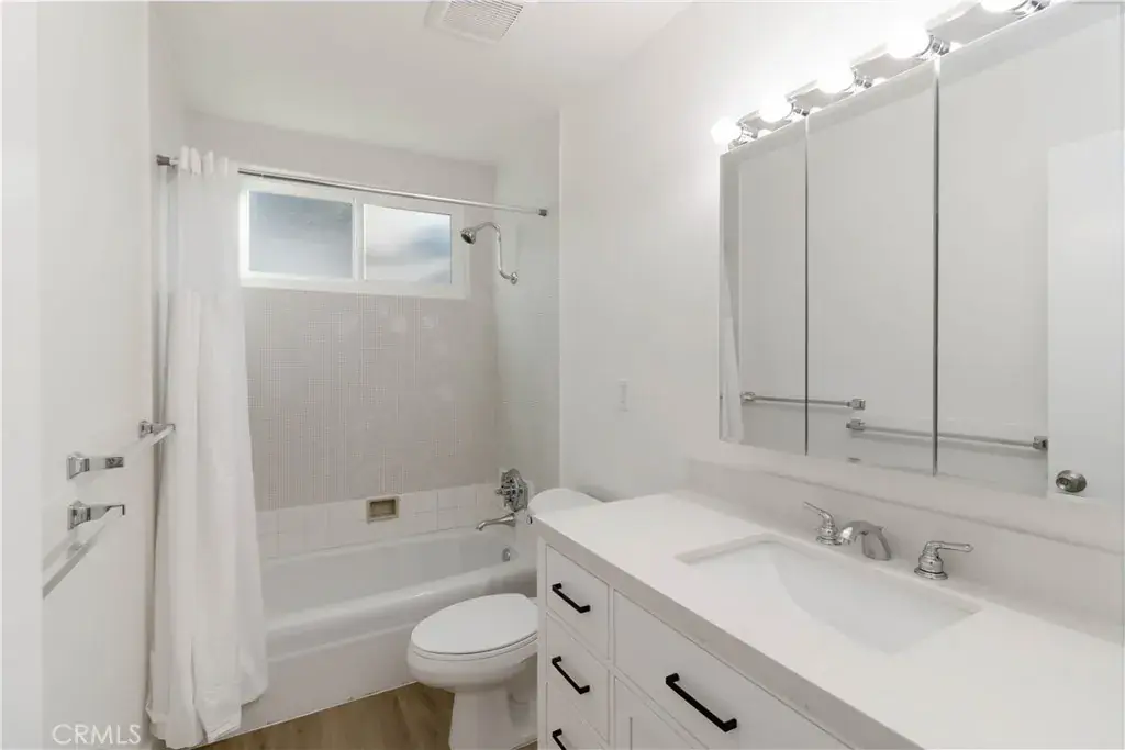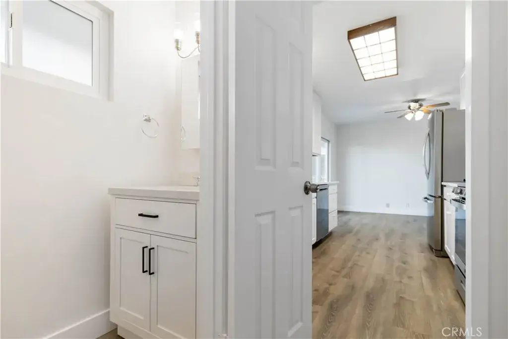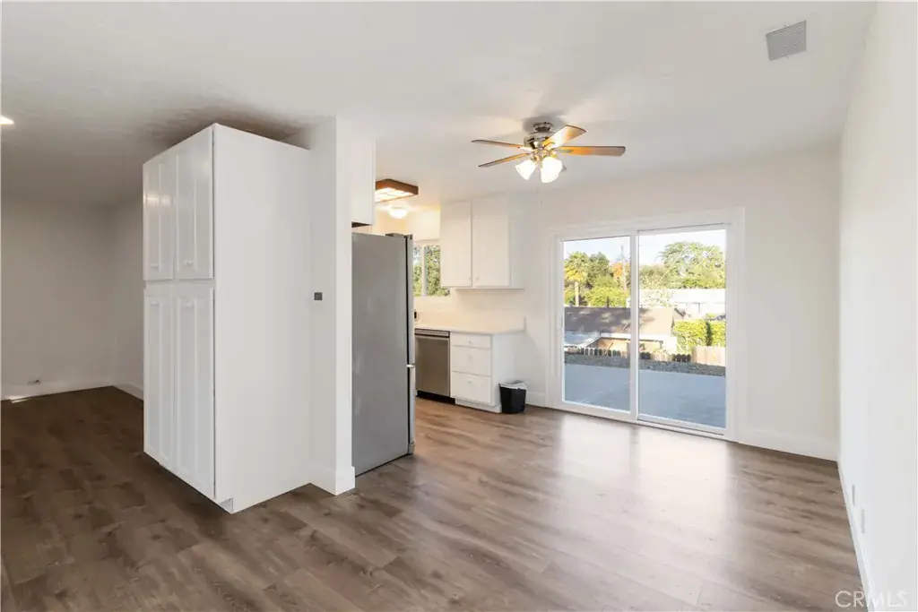 Inside, the home has been freshly painted both inside and out using premium Dunn-Edwards finishes. The fully remodeled kitchen includes new cabinetry, countertops, appliances, and luxury vinyl flooring that flows throughout the home.