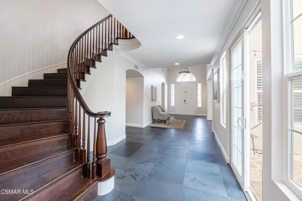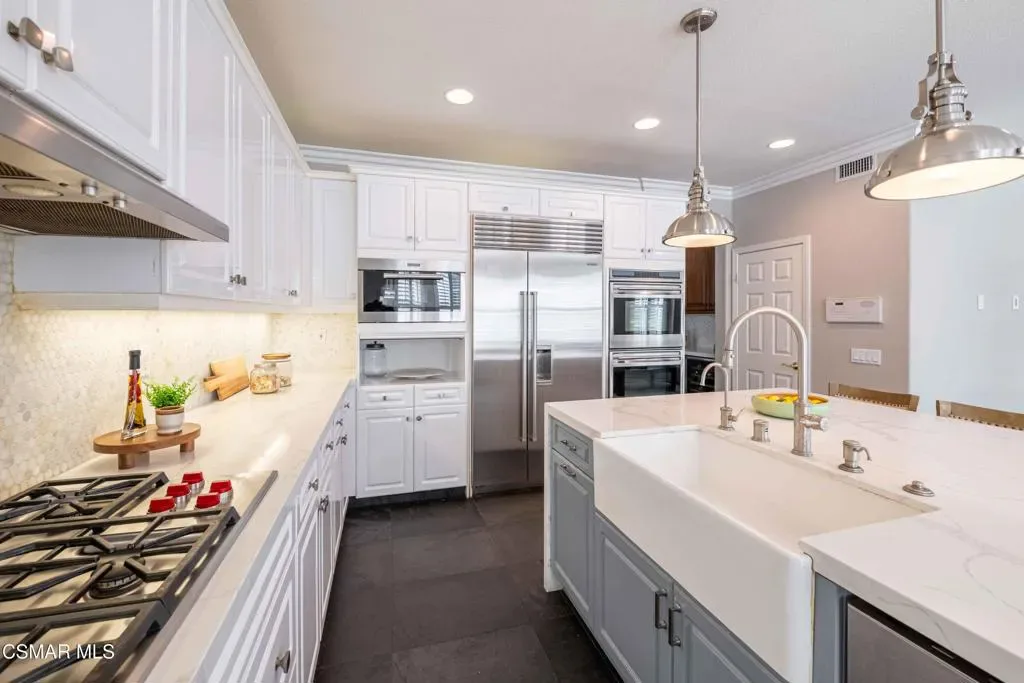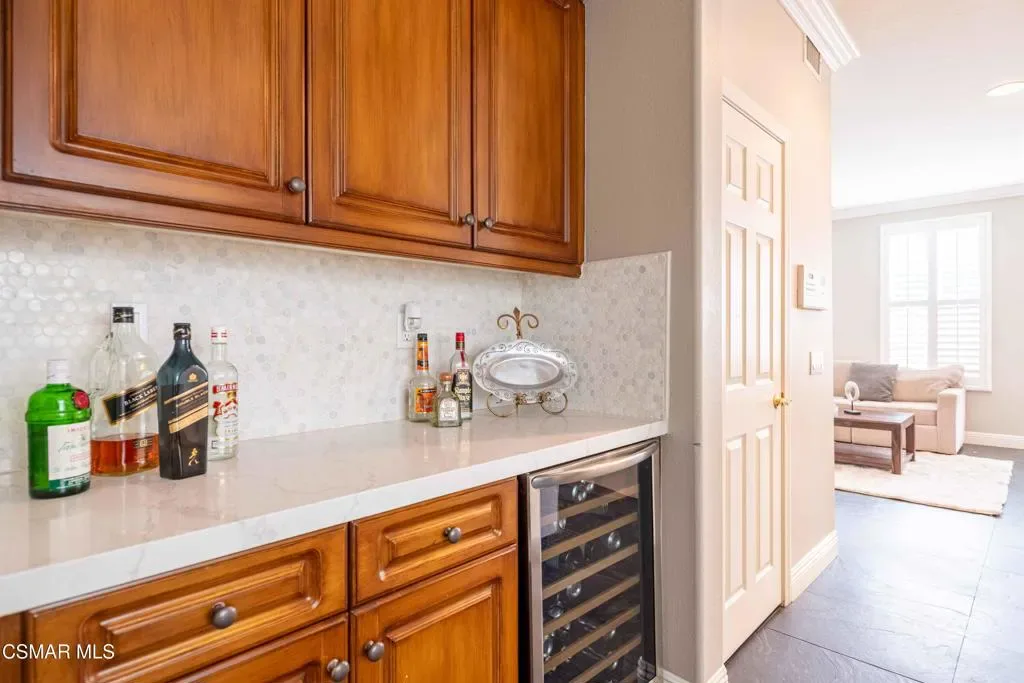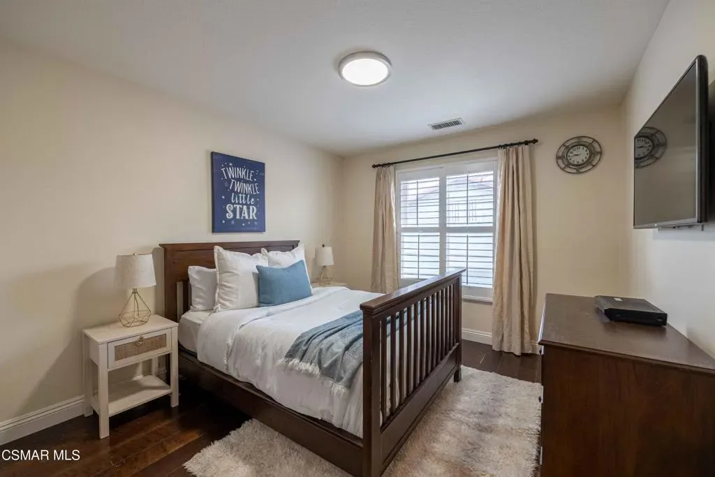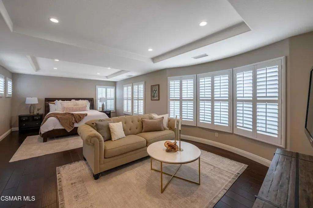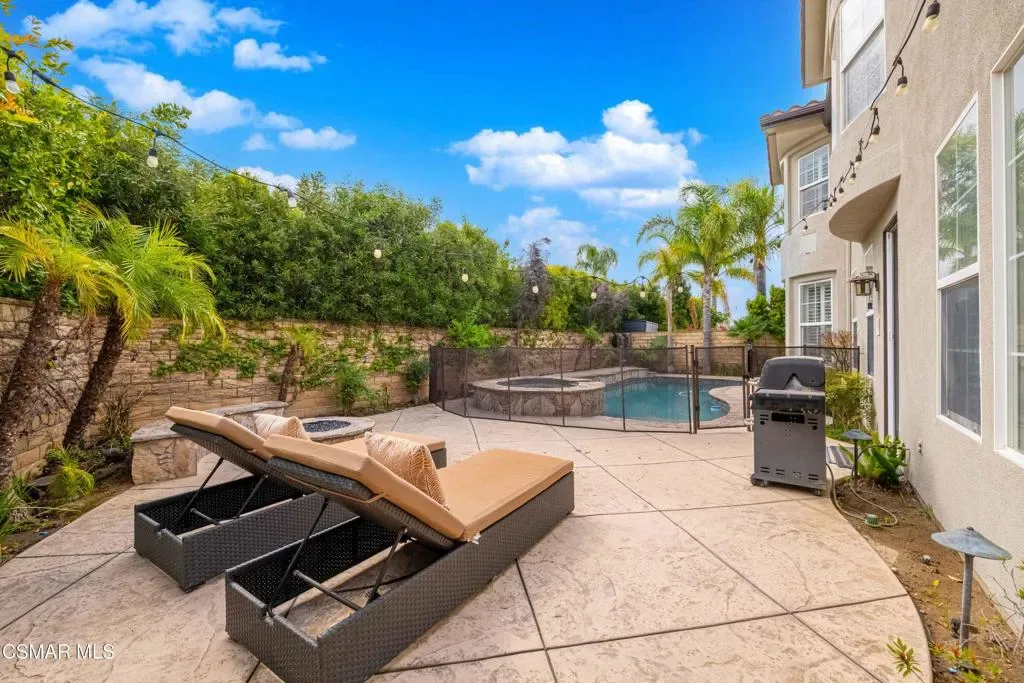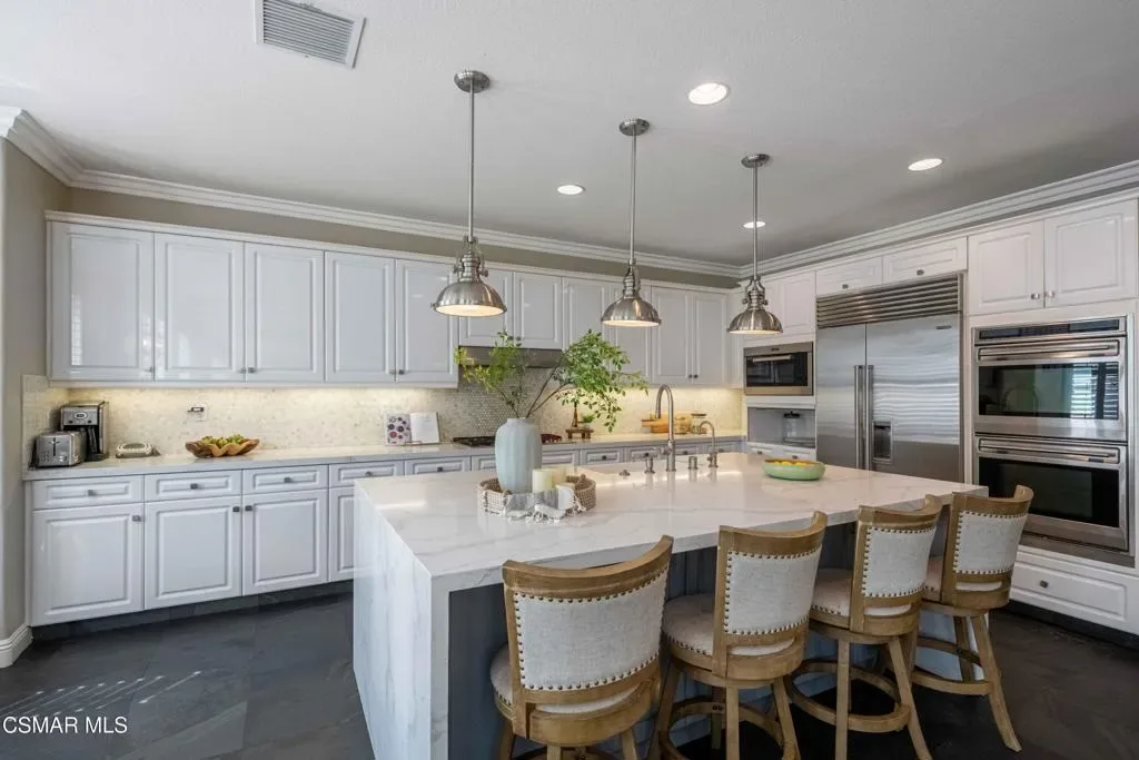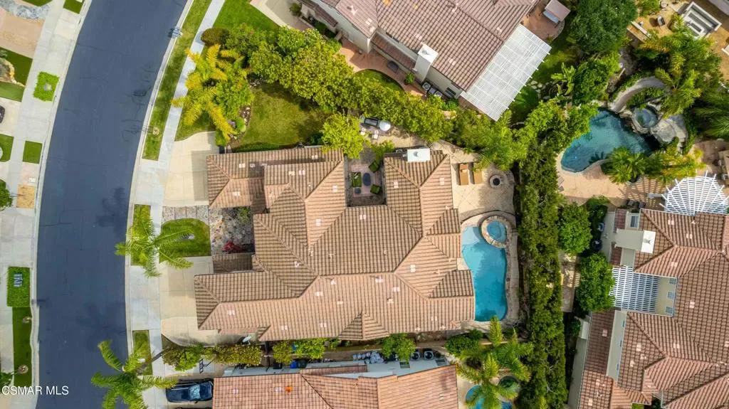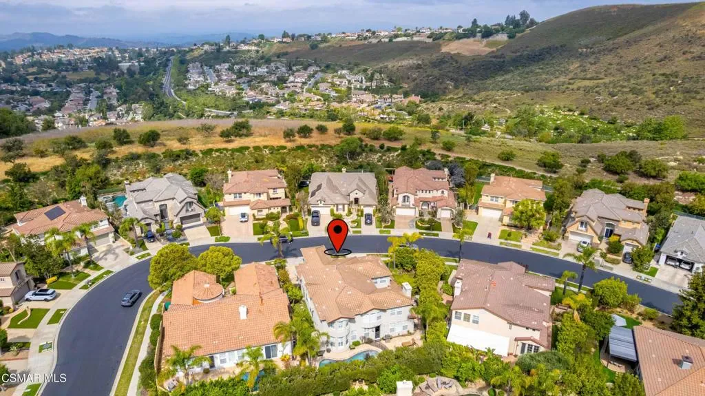 Welcome to 3140 Eaglewood Ave, an exceptional residence located on a cul-de-sac street within the prestigious 24-hour guard-gated community of Woodridge Estates in Thousand Oaks. Offering approximately 4,100 square feet of thoughtfully designed living space, this 5-bedroom, 5-bathroom home with a 3-car garage combines timeless architecture with modern updates, creating a home that is both elegant and highly functional.Upon entry, you’re greeted by soaring ceilings and an abundance of natural light, complemented by custom window shutters found throughout the home, enhancing both style and privacy. The open and inviting floor plan is designed to accommodate a variety of lifestyles, featuring a desirable main-level bedroom and multiple living and entertaining spaces. A formal dining room provides a refined setting for gatherings, while the beautifully remodeled kitchen serves as the heart of the home, complete with a large center island with waterfall quartz countertops, farmhouse sink, Sub-Zero Refrigerator, Wolf double ovens and cooktop, a breakfast counter, and a charming breakfast nook.Upstairs, an expansive bonus room offers versatility as a media room, game room, or additional family living space. On the lower level, a wine cellar closet adds a unique and elevated touch, perfect for collectors and entertainers alike. Thoughtful upgrades and custom details are carried throughout, creating a cohesive and polished living experience.The backyard is designed for both relaxation and entertaining, featuring a private pool and spa, along with a built-in BBQ area–perfect for enjoying Southern California’s seamless indoor-outdoor lifestyle.Set within one of Thousand Oaks’ most sought-after gated communities, this home offers privacy, security, and a true sense of community, all while being conveniently located near top-rated schools, shopping, dining, and scenic outdoor spaces.