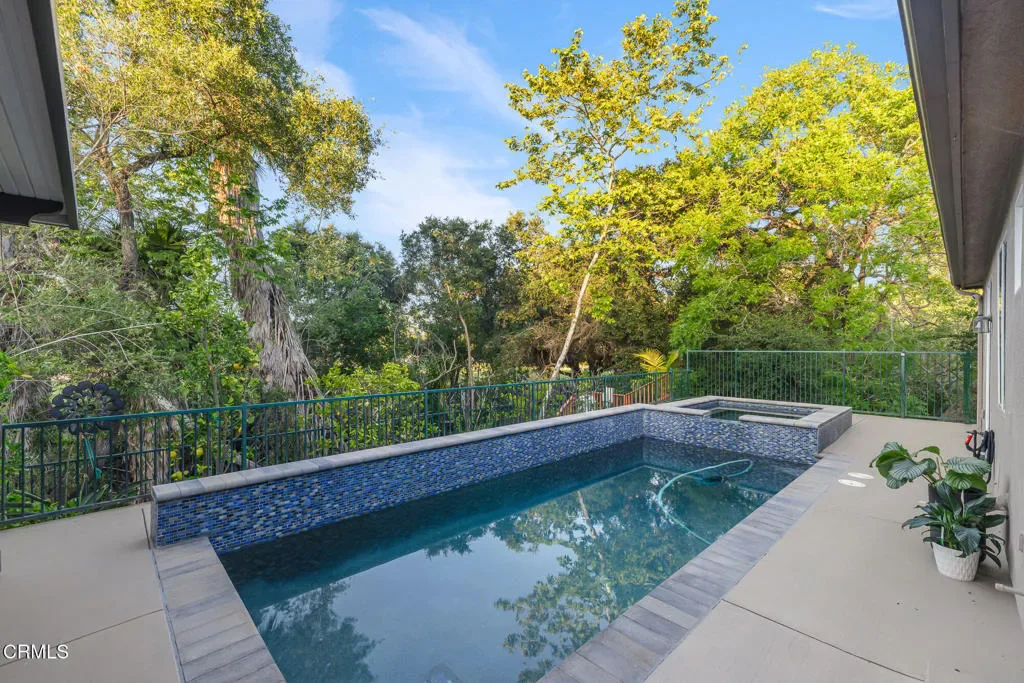 Welcome to this beautifully maintained, turn-key single-story home in Newbury Park featuring 3 bedrooms and 3 bathrooms on a private corner lot. This inviting home offers a spacious floor plan with two fireplaces, an upgraded kitchen, and a backyard designed for relaxing and entertaining. The backyard features a pool and spa, outdoor kitchen, BBQ area, and a peaceful creek setting directly behind the property. Inside, the home offers vaulted ceilings, two marble fireplaces, custom built-ins, plantation shutters, crown molding, recessed lighting, and fresh interior and exterior paint.The kitchen includes a spacious walk-in pantry, granite countertops, and brand-new appliances, including a 5-burner cooktop, convection wall oven, microwave, air fryer, new disposal, and granite sink.The primary suite features a large walk-in closet, oversized marble shower, jetted tub, and direct access to the back patio. The second bedroom includes a walk-in closet and en-suite bathroom. The third bedroom offers flexible use as a bedroom, office, or guest space.Additional features include double-pane windows, hardwood flooring in the entry, kitchen, and family room, plus new tile flooring in the primary bedroom, family room, and hallway. The home also has a new heating and air conditioning system, a fully redone roof, and professionally maintained landscaping with palms, fruit trees, and mature plants in the front and back yards.Modern upgrades include a Nest security camera system and drip irrigation with a Rachio Wi-Fi irrigation controller.Located near Cypress Park, local schools, grocery stores, restaurants, and hiking and biking trails, this home offers a wonderful combination of comfort, convenience, and outdoor enjoyment.