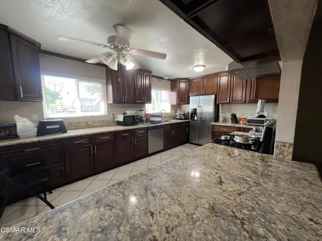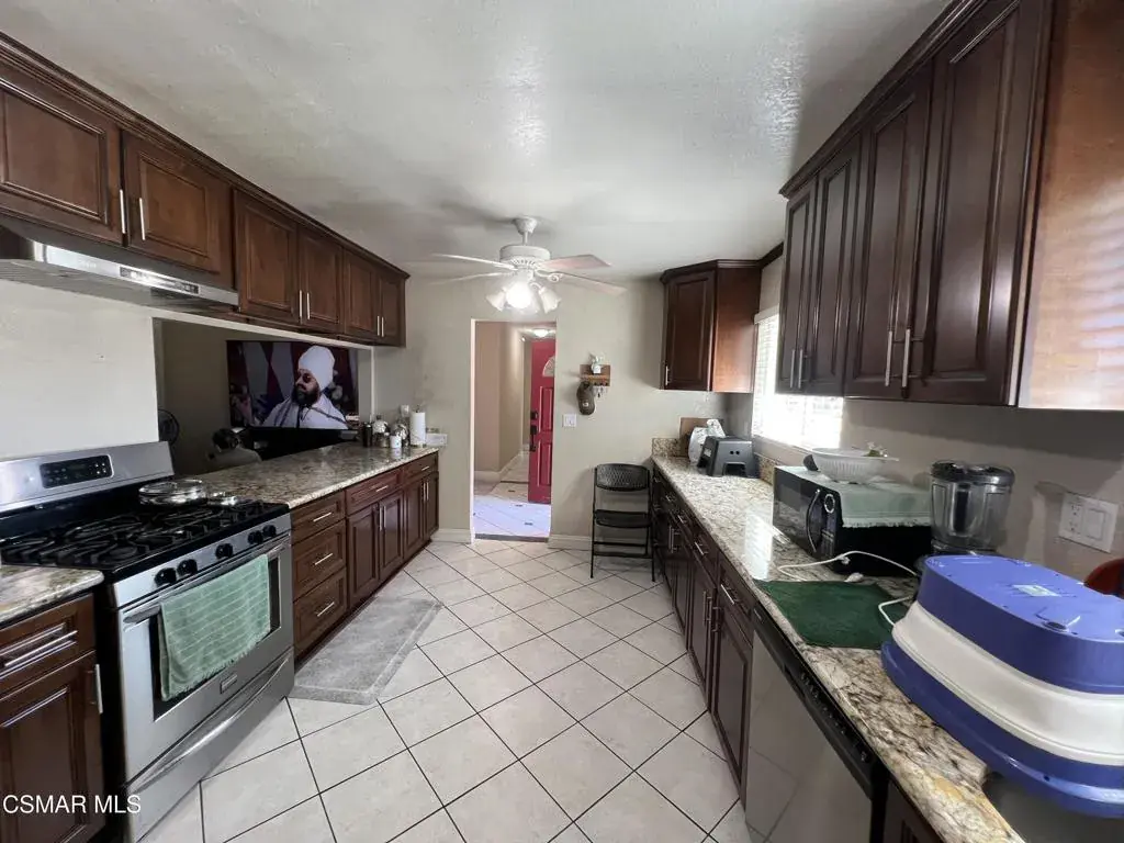 Great opportunity in the desirable Thousand Oaks area situated on an expansive +/-10,000 square foot lot. The main residence offers approximately 1,324 square feet of living space with a 4-bedroom, 2-bath layout featuring wood flooring, tile flooring in the kitchen, entry, and hallways, carpet throughout the bedrooms, and dual pane windows, along with a spacious living room with fireplace and a dedicated dining area ideal for comfortable living and entertaining. Upon entry, you are welcomed by a beautifully updated kitchen complete with granite countertops, stainless steel appliances including dishwasher, refrigerator, and oven stovetop, beautiful cabinetry, and abundant counter space with a breakfast bar overlooking the main living areas. Just beyond the family room is a huge enclosed sunroom not included in the recorded square footage, providing flexible space for entertaining, extended living, gatherings, or home office use. The property also includes a nicely converted garage. (contact listing agent for more information). There are two gated access points and wide side access, the lot provides ample room for expansion or possible ADU development (buyer to verify with the City of Thousand Oaks). Ideally located near award-winning schools, shopping, dining, parks, trails, hospitals, and convenient access to the 101 and 23 freeways, this property presents a unique opportunity for owner-occupants or investors seeking space, flexibility, and upside potential in a prime location.