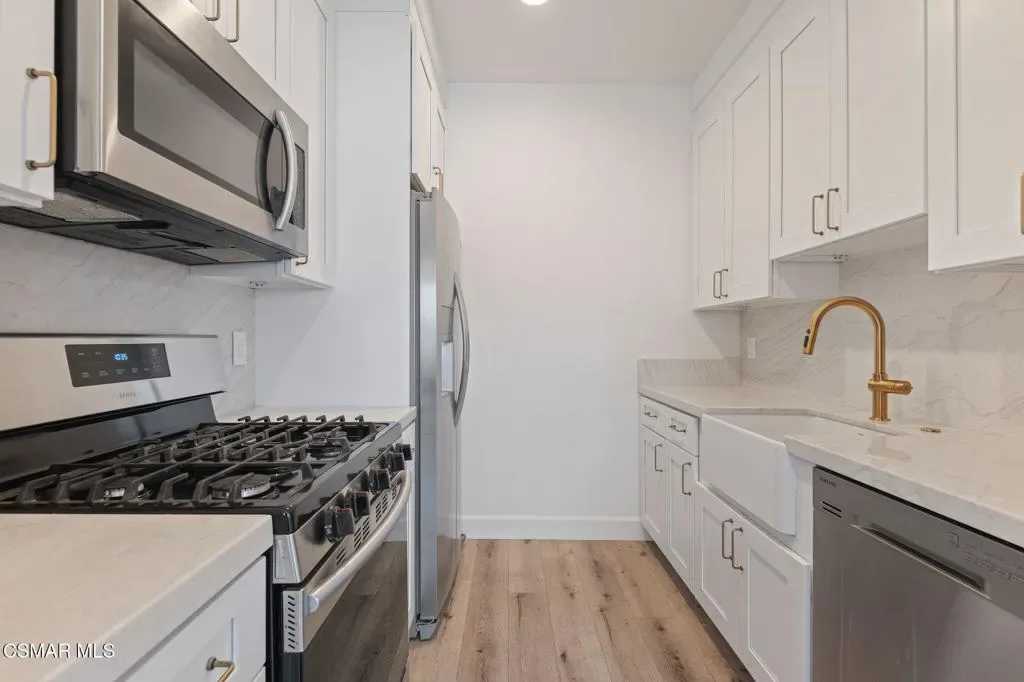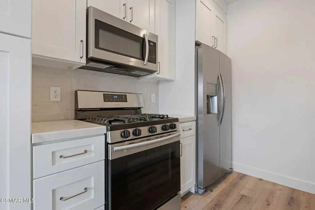 Welcome to this beautifully updated 2-bedroom, 2-bathroom single-level condo located on the second floor in the highly desirable Casa de Oaks community of Thousand Oaks. Thoughtfully remodeled, recently repainted throughout and move-in ready, this home combines modern design with everyday comfort in a prime central location.Originally remodeled in 2019, the home features smooth ceilings, recessed lighting, luxury vinyl plank flooring, upgraded appliances, and expanded closet openings, along with updated bathrooms and finishes throughout. More recently, in March 2025, the kitchen and primary bath were fully reimagined with new shaker cabinetry, quartzite countertops and backsplash, a farmhouse sink, Kohler fixtures, and updated plumbing. The bathroom showcases a designer-inspired feel with Zellige tile shower walls, new tile flooring, a new vanity, Santec fixtures, and a refined limewash finish.The light-filled interior offers a seamless flow from the living area to dining and kitchen spaces, creating an inviting environment for both everyday living and entertaining. Additional features include solid core doors, in-unit laundry, and an Ecobee system for enhanced comfort and efficiency.Casa de Oaks is a well-maintained community with ongoing improvements, including a new roof (2025) and patio resurfacing (2024), along with beautifully maintained landscaping, pool, and spa amenities. Ideally situated near the 101 and 23 freeways, and just moments from The Lakes, Civic Arts Plaza, shopping, dining, and local conveniences, this home offers the perfect blend of style, comfort, and location.