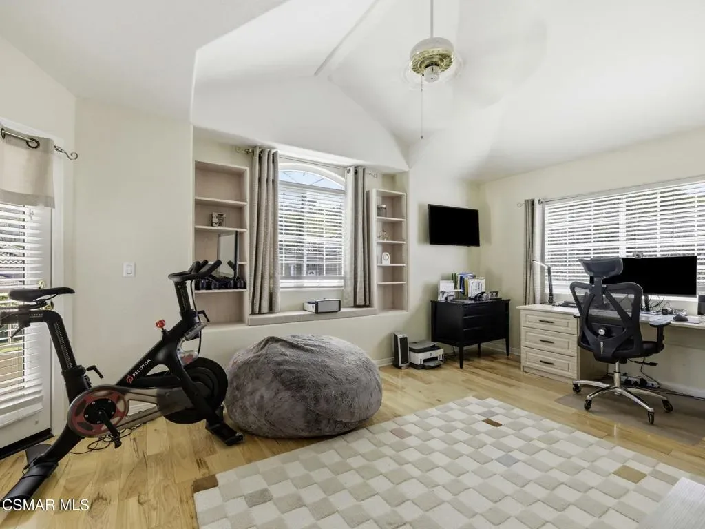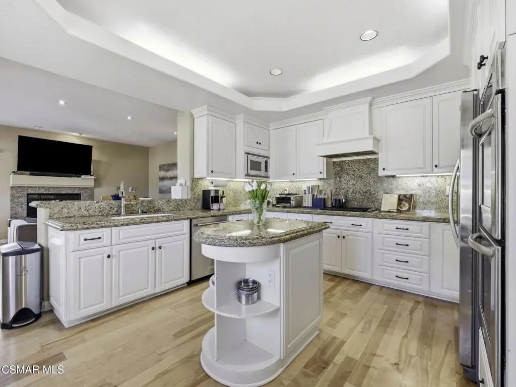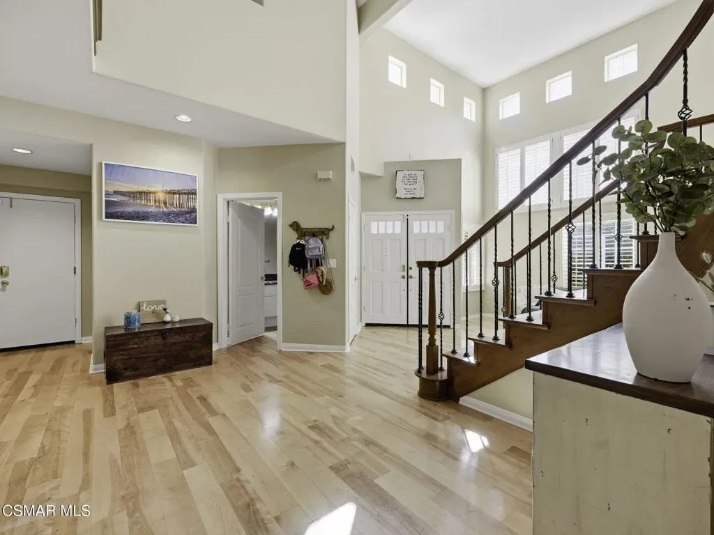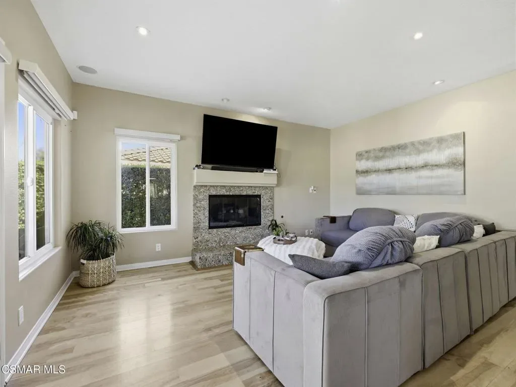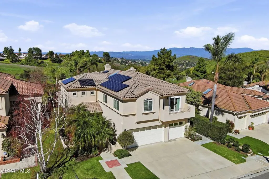 Amber Ridge Retreat – Where Luxury Meets LifestyleNestled in the prestigious Amber Ridge community of Thousand Oaks, this elegant 3,428 sq ft home offers 5 bedrooms and 3.5 baths on a 7,100sq ft lot. Soaring ceilings and expansive windows fill the formal living and dining areas with natural light, while the open-concept kitchen flows seamlessly into a welcoming family room with fireplace. A downstairs bedroom with private bath, powder room, and laundry room complete the main level.Upstairs, the luxurious primary suite features sunset views from a private balcony and a spa-inspired bath with double-sided fireplace, soaking tub, walk-in shower, dual vanities, and generous walk-in closet. Three additional bedrooms, a versatile loft, and a hallway bath provide ample space, with two bedrooms sharing an east-facing balcony.Upgrades include fully paid solar panels, tankless water heater, sun-blocking shades, engineered wood floors, and a three-car garage with epoxy flooring, custom storage, and EV charging. The private backyard showcases lush landscaping, a sparkling pool and spa, and a tranquil patio for entertaining.Ideally located near the 23 Freeway, top-rated schools, shopping, parks, trails, and Sunset Hills Country Club, this exceptional home blends luxury, comfort, and convenience — the perfect place to begin your next chapter. Don’t wait until the sign says SOLD, tour today before it is gone!