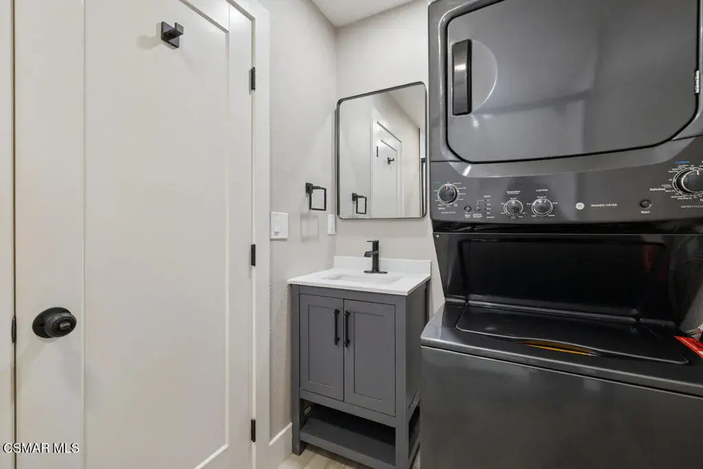 Come see this newly renovated studio on a quiet street in Thousand Oaks. Open the gate and follow the path to your own private oasis. The full-size kitchen features custom cabinets, granite counter tops and stainless-steel appliances including a new refrigerator. The new bath has a large shower, new vanity, and a new stack laundry unit – included. The studio has its own heat/air, no need to share. There is no garage, but the studio comes with a large storage unit.