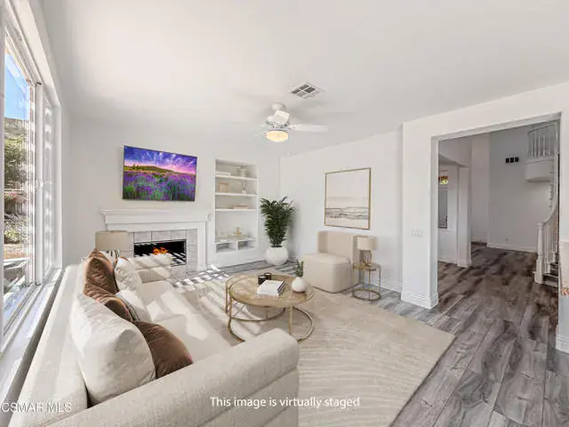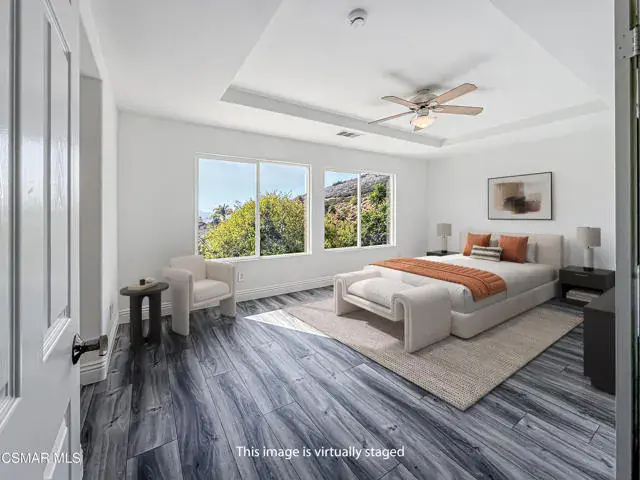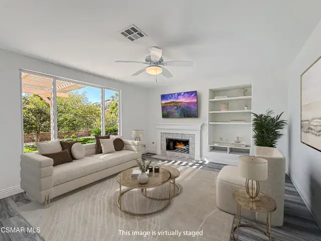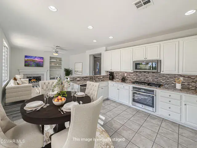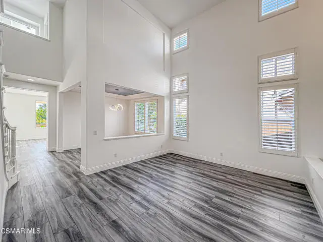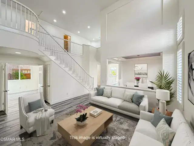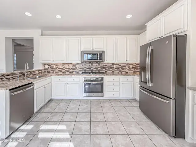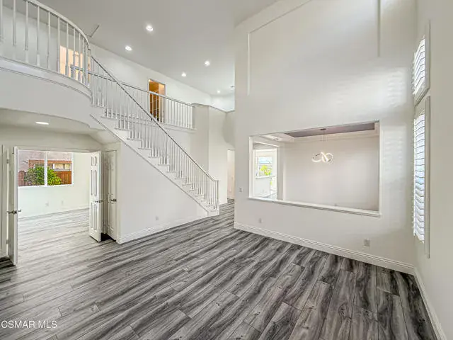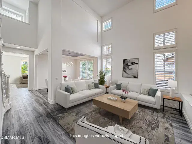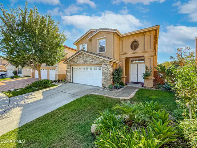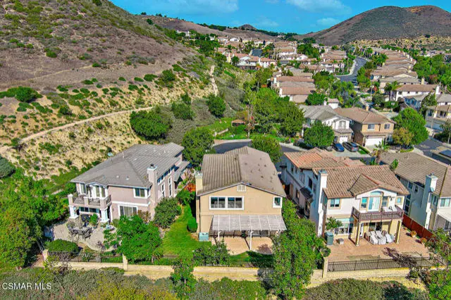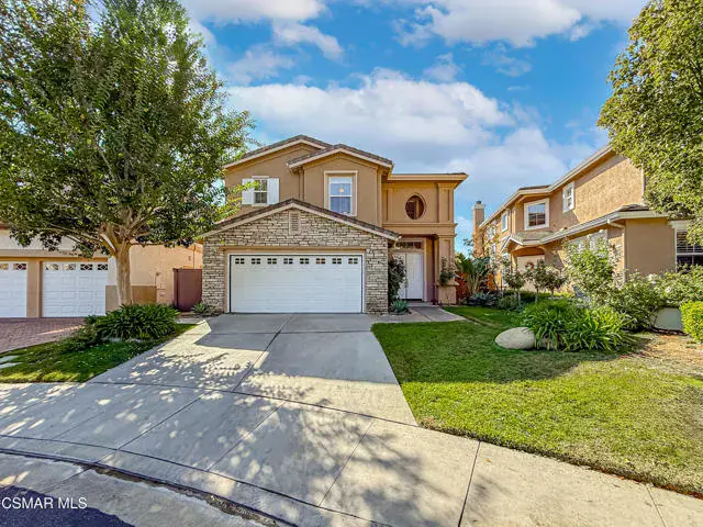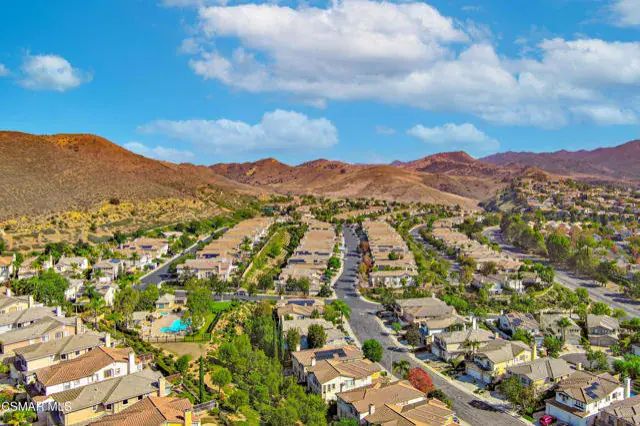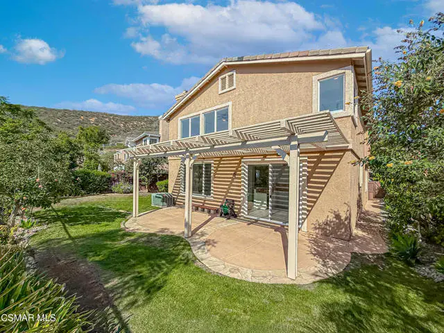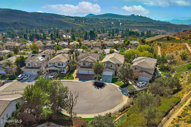 Welcome to this beautiful retreat with stunning mountain views in one of Lang Ranch’s most sought-after communities! Nestled on a quiet cul-de-sac and situated on a larger lot within the gated Eagleridge neighborhood, this lovely 4-bedroom + office/den + 2.5-bath home features an open floor plan with a grand double-door entry, soaring ceilings, abundant natural light, upgraded flooring, plantation shutters, new LED recessed lighting, crown molding, updated hardware, and more.The inviting living room impresses with its high ceilings and tall windows. The sun-filled chef’s kitchen offers extensive granite countertops with mosaic tile backsplash, stainless steel appliances, plentiful white cabinetry with modern brushed-nickel hardware, and a spacious eat-in area. The adjoining family room is warm and welcoming with a cozy fireplace and serene views of the lush backyard. The first floor also includes a formal dining room, an oversized laundry room with sink, and a flexible office/den/guest room (no closet).The spacious primary suite showcases large picture windows framing panoramic mountain views, along with a generous walk-in closet with new organizers, dual vanities, and a separate shower and soaking tub. Three additional well-sized bedrooms, a hall bath, and a linen closet complete the second floor.The backyard is an entertainer’s delight, offering breathtaking views of rolling hills and open sky. Thoughtfully landscaped with drought-tolerant plants, shrubs, and fruit trees (a fruiting Lemon, 2 fruiting orange trees and an apple tree), it provides the perfect setting to enjoy morning coffee or take in stunning sunsets in peaceful privacy.Located within the award-winning Lang Ranch Elementary, Los Cerritos Middle, and Westlake High school districts. Community amenities include a pool, spa, and a newly constructed playground. Close to parks, hiking/biking trails, and shopping. This wonderful home exemplifies the best of Southern California living!