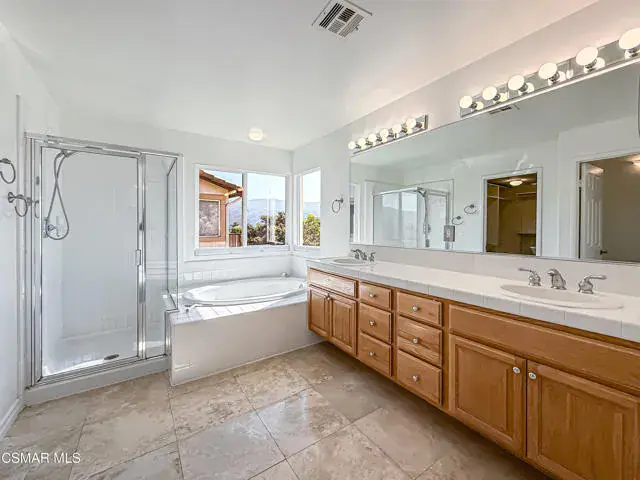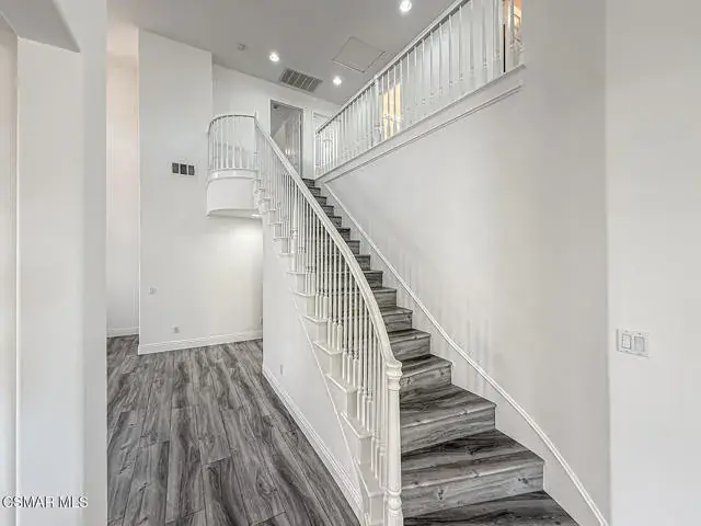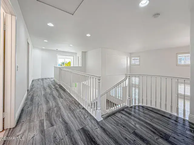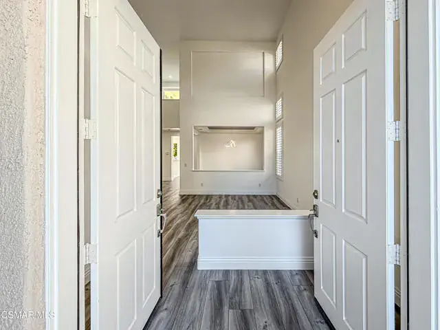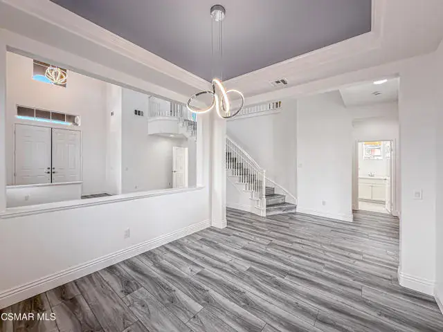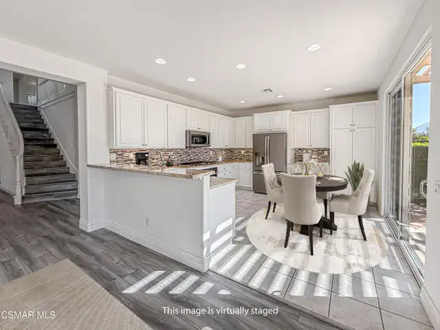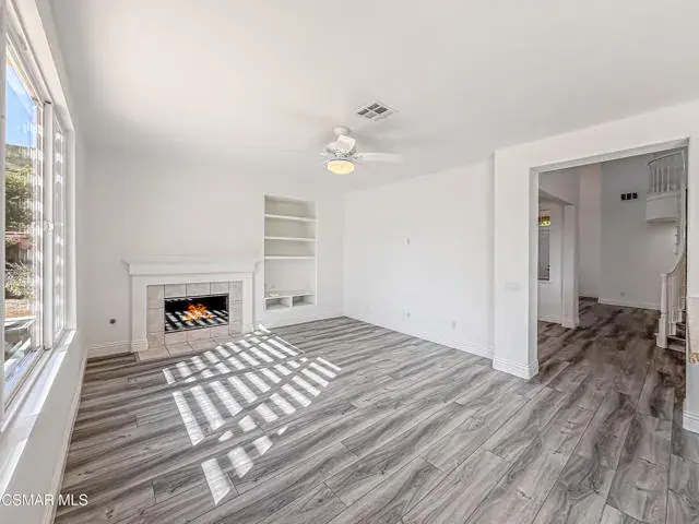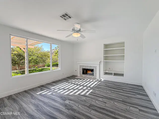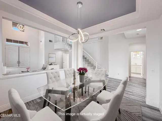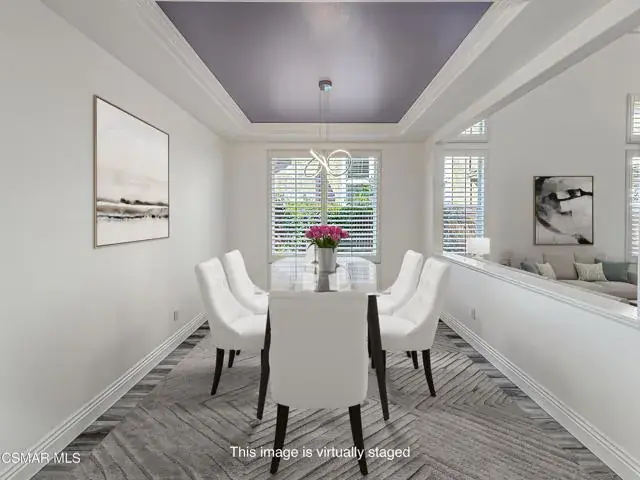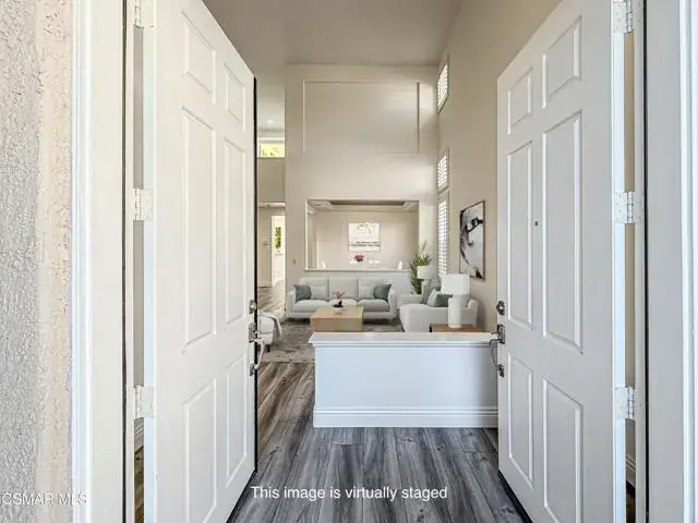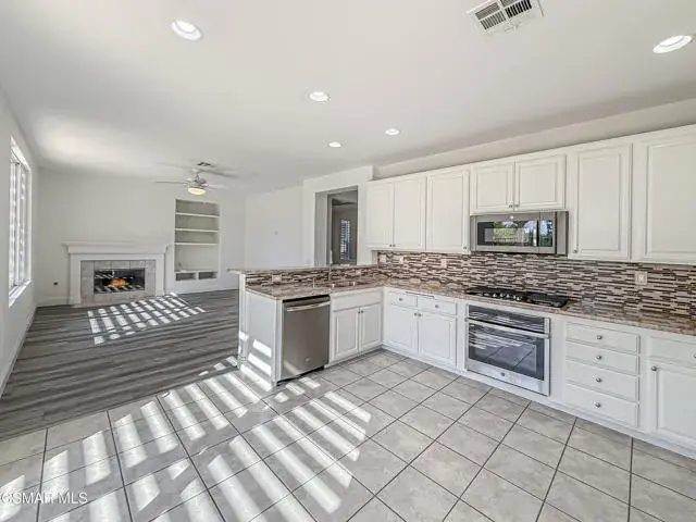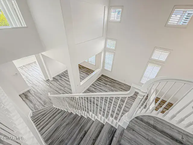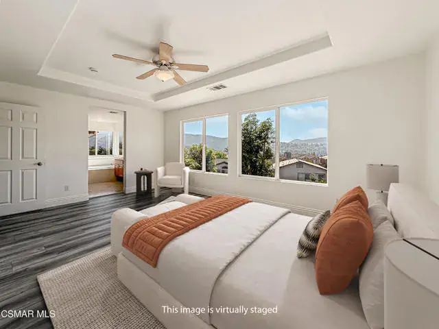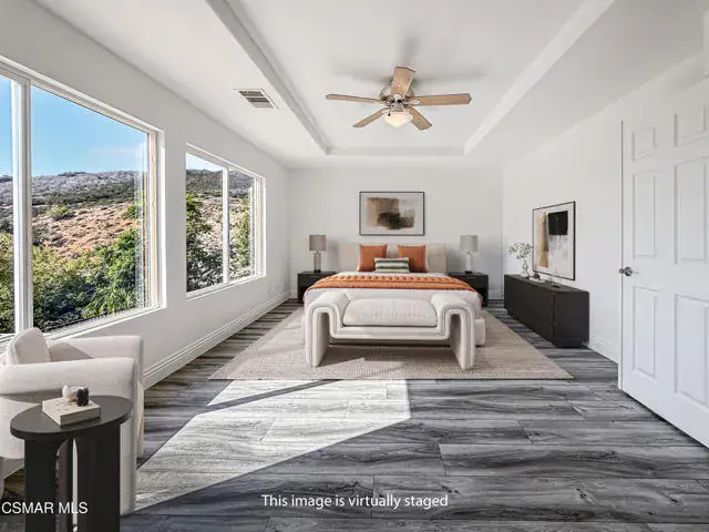 Welcome to this beautiful retreat with stunning mountain views in one of Lang Ranch’s most sought-after communities! Nestled on a quiet cul-de-sac and situated on a larger lot within the gated Eagleridge neighborhood, this lovely 4-bedroom + office/den + 2.5-bath home features an open floor plan with a grand double-door entry, soaring ceilings, abundant natural light, upgraded flooring, plantation shutters, new LED recessed lighting, crown molding, updated hardware, and more.The inviting living room impresses with its high ceilings and tall windows. The sun-filled chef’s kitchen offers extensive granite countertops with mosaic tile backsplash, stainless steel appliances, plentiful white cabinetry with modern brushed-nickel hardware, and a spacious eat-in area. The adjoining family room is warm and welcoming with a cozy fireplace and serene views of the lush backyard. The first floor also includes a formal dining room, an oversized laundry room with sink, and a flexible office/den/guest room (no closet).The spacious primary suite showcases large picture windows framing panoramic mountain views, along with a generous walk-in closet with new organizers, dual vanities, and a separate shower and soaking tub. Three additional well-sized bedrooms, a hall bath, and a linen closet complete the second floor.The backyard is an entertainer’s delight, offering breathtaking views of rolling hills and open sky. Thoughtfully landscaped with drought-tolerant plants, shrubs, and fruit trees (a fruiting Lemon, 2 fruiting orange trees and an apple tree), it provides the perfect setting to enjoy morning coffee or take in stunning sunsets in peaceful privacy.Located within the award-winning Lang Ranch Elementary, Los Cerritos Middle, and Westlake High school districts. Community amenities include a pool, spa, and a newly constructed playground. Close to parks, hiking/biking trails, and shopping. This wonderful home exemplifies the best of Southern California living!