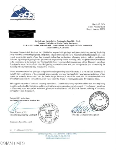 Introducing a ONCE-in-a-LIFETIME panoramic view development opportunity in the HEART of Thousand Oaks buildable for 28+ homes! This is an EXCEEDINGLY RARE, ~7.5-acre parcel poised for residential transformation. Situated off the premier VIEW streets of Calle Hondanada & Calle Artigas, this expansive property offers sweeping PANORAMIC views that will grace EVERY future home built on the site. In a city where available land is virtually NONEXISTENT, this kind of offering is UNHEARD of as Thousand Oaks is almost COMPLETELY built-out, making this one of the LAST multi-home buildable plots remaining. The City mandates a MINIMUM of 14 homes and buildable for up to 28+ properties. This is a lucrative opportunity for developers to create a premium enclave of view-oriented residences. INCREDIBLY stellar opportunity worth the research & consideration! Or, come up with a better plan and submit to the City for approvals. The ROI & income potential is IMMENSE from this extraordinarily RARE opportunity!