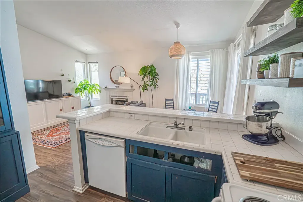 Bright, upgraded 2-bed, 1.25-bath end-unit condo on the top floor in Thousand Oaks’ sought-after Camelot neighborhood. Enjoy serene greenbelt views from the expansive wraparound balcony, paired with soaring vaulted ceilings and an open-concept layout that maximizes natural light. Hardwood floors grace the living and dining spaces, complemented by a charming wood-burning fireplace. The generous kitchen boasts a breakfast bar, while refreshed bathrooms showcase modern cabinetry and stylish tile surrounds. Includes washer, dryer, and refrigerator (as-is), plus energy-efficient dual-pane windows/sliders and ceiling fans in the primary bedroom and living room for year-round comfort. Perfectly positioned close to top-rated schools, parks, dining options, and the Civic Arts Plaza—prime for first-time buyers, empty nesters, or professionals desiring low-maintenance living in Thousand Oaks.