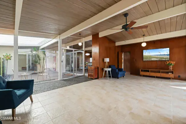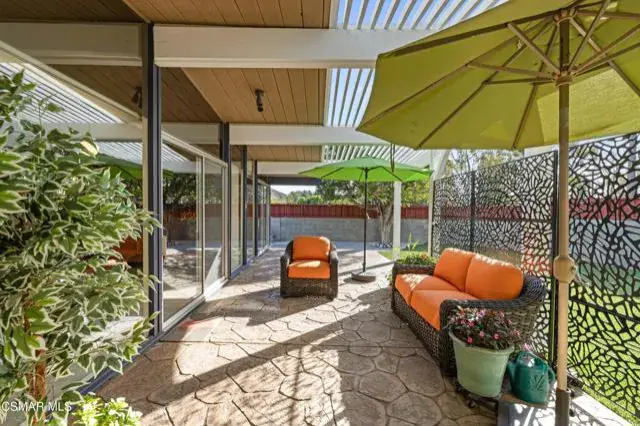 Step through the striking red entry and into an authentic mid-century modern treasure positioned at the entrance of Thousand Oaks’ celebrated Eichler neighborhood. Designed in the Eichler tradition and influenced by the original Claude Oakland architectural style, this thoughtfully maintained residence captures the pure essence of mid-century living–clean modern lines, an open floor plan, and a seamless connection between indoor and outdoor spaces.Four bedrooms and two bathrooms are arranged across a generous single-story layout of approximately 1,950 sq ft, offering comfortable living with room for work, creativity, and gathering. The flow of the home highlights classic Eichler principles: expansive glass panels that illuminate the living spaces, a natural emphasis on light and openness, and a sense of calm created by warm materials and organic transitions.Signature mid-century elements take center stage throughout the home, including post-and-beam construction, wide window lines, and functional spaces designed around indoor-outdoor living. The living areas extend naturally into the backyard, making the home feel larger and ideal for entertaining, quiet evenings, or simply enjoying the California climate year-round.The spacious lot enhances that lifestyle even further. The backyard offers mature shade trees, a large patio, and multiple zones perfect for gatherings, gardening, pets, or future outdoor improvements. It’s a private and versatile outdoor environment that complements the home’s architectural roots.Location is another major advantage. Situated in an established and sought-after Thousand Oaks enclave, this home places you just minutes from The Oaks — one of the area’s most popular shopping, dining, and entertainment destinations. With easy access to schools, parks, hiking trails, restaurants, and major commuter routes, the setting combines convenience with a neighborhood feel that buyers consistently prioritize.More than just a residence, this property offers the rare opportunity to own a true piece of California architectural history. For buyers who appreciate authentic mid-century design, iconic style, natural light, and the lifestyle an Eichler home provides, 1509 Campbell Ave delivers exceptional appeal in an unbeatable Thousand Oaks location.
