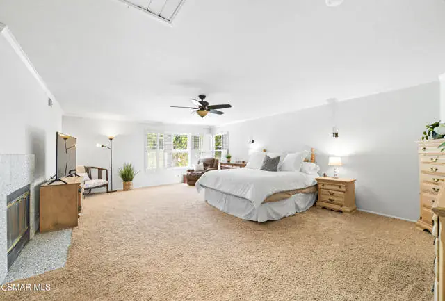 Located within the prestigious guard-gated community of Chanteclair in Thousand Oaks, this expansive 5-bedroom, 4-bathroom home offers 3,354 sq ft of beautifully designed living space and is move-in ready. The remodeled chef’s kitchen features quartz countertops, a large center island, custom cabinetry, double ovens, and a gas range–opening seamlessly to the spacious family room with built-in bookcases, surround sound, fireplace, and custom bar, perfect for everyday living and entertaining. High ceilings and rich hardwood floors enhance the formal living and dining rooms, creating a warm and elegant atmosphere. A main-level bedroom and full bath provide flexibility for guests, multi-generational living, or a home office. Upstairs, the oversized primary suite impresses with a double-sided fireplace, sitting area, and a luxurious ensuite bath with dual sinks, soaking tub, walk-in shower, and large closet. Three additional bedrooms and a full hall bath complete the second level. Enjoy the privacy and security of a gated neighborhood close to parks, scenic trails, and top-rated Conejo Valley schools. With its ideal floor plan, prime location, and turnkey appeal, this home delivers exceptional value in one of Thousand Oaks’ most sought-after communities.