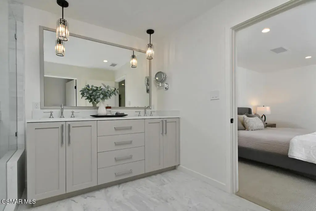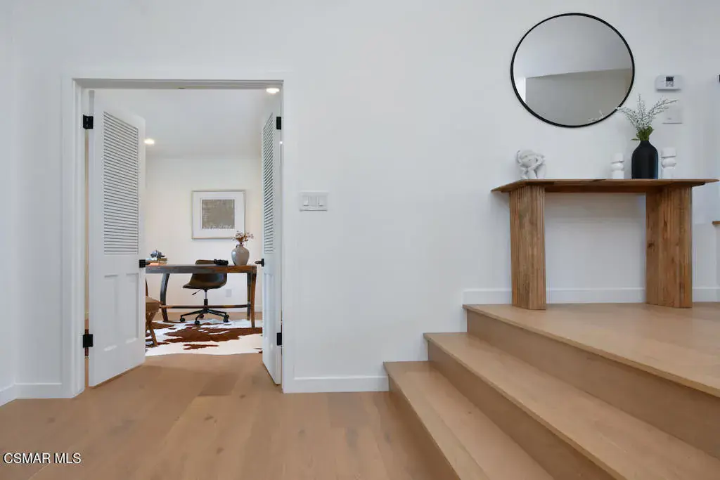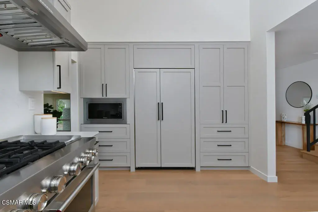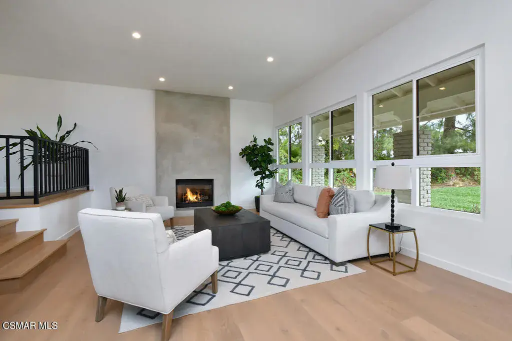 Welcome to this completely renovated 4-bedroom, 3-bath residence offering 2,401 sq ft of beautifully reimagined living space on an expansive 13,000+ sq ft corner lot, tucked away on a quaint cul-de-sac of four well- manicured homes. Thoughtfully redesigned from top to bottom, the home features smooth skim-coated walls, new European white oak wood flooring, and upgraded Alpine windows throughout, creating a light, modern, and cohesive aesthetic. The open, upgraded kitchen is a true standout, featuring a unique vaulted ceiling, luxuriously finished custom millwork with paneled appliances, a picture window over the sink, and Del Quartz countertops by Arizona Tile. Seamlessly situated between the dining room, family room, and living room, the kitchen is perfect for everyday living and entertaining alike. Entertain with ease at the custom bar complete with a refrigerator and sink, while enjoying the warmth and character of the nearby fireplace. A downstairs bedroom and full bath offer ideal flexibility for guests, multigenerational living, or a private home office. Upstairs, the primary suite is a true retreat, showcasing a reconfigured spa-like bathroom with an oversized walk-in shower and natural Calcutta Gris stone on the walls and flooring. Additional highlights include indoor laundry, a 2-car garage, a new Presidential two-layer roof, a new heating and air system, and a completely renovated pool featuring a 400,000 BTU heater, auto-fill, overflow, and shut-off valves. Uniquely situated on a rare four-home cul-de-sac, this property offers exceptional privacy, generous outdoor space, and standout curb appeal. This turnkey home blends modern luxury with thoughtful design and is truly move-in ready. Not just a pretty face, you can leave your toolbox behind.Compass is a licensed real estate broker (01991628) in the State of California and abides by Equal Housing Opportunity laws. All material presented herein is intended for informational purposes only. Information is compiled from sources deemed reliable but is subject to errors, omissions, changes in price, condition, sale, or withdraw without notice. No statement is made as to accuracy of any description. All measurements and square footages are approximate. Buyers should not rely on any advertised or disclosed square footage measurements and should retain their own experts to measure structural size and/or square footage during their inspection period. This is not intended to solicit property already listed. Nothing herein shall be construed as legal, accounting or other professional advice outside the realm of real estate brokerage.