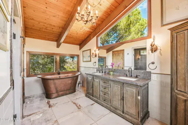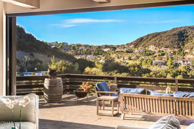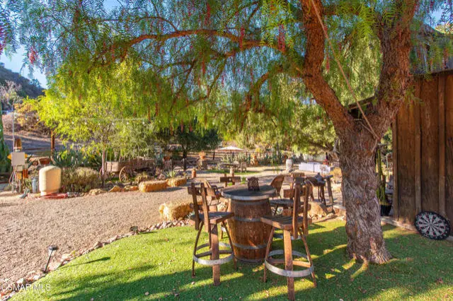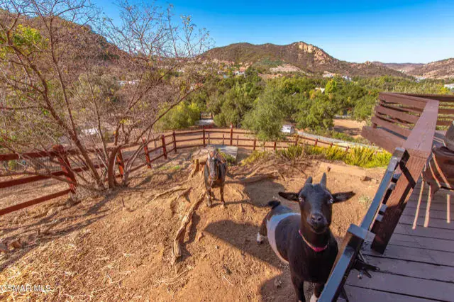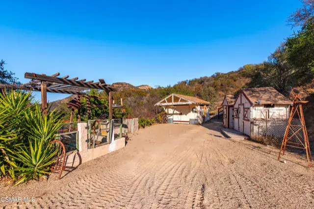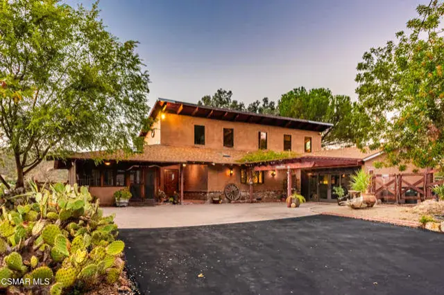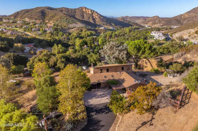 Prospector Ranch Country calm meets Westlake Village convenience 8+ acres along a private road tucked within rolling hills, tall oaks & adjacent to Sherwood Lake Club where you can enjoy golf, swimming & tennis Rare Ventura County retreat blends rustic character w/refined craftsmanship & modern systems throughout Arrive to the Western town, w/saloon & bar, horseshoe pit & string-lit outdoor dining area This Western town isn’t just charming; it’s a working filming location, event space & money making asset that’s become a SoCal favorite for productions & celebrations alike This backdrop has hosted photo, fashion, music, TV & film shoots plus private gatherings & weddingsFeatured on KTLA Channel 5 news, it’s also appeared in Jay Leno’s Garage w/John Fogerty & editorials for Bazaar, Free People, The Western Medicine Band, NBG Weddings, Carly Jeans Los Angeles & moreCinematic magic under the California sun & supplemental income for its ownersRemodeled 2 story residence (approx. 2k sq ft per sellers) brings the outdoors in w/ceramic tile flooring on the lower level, solid wood doors & hand-crank casement windows throughout Fleetwood triple sliding glass wall opens great room to a broad deck w/mountain & sunset views Taj Mahal quartzite counters, Viking appliances, filtered water system & whole-house filtration from two private wells make the home luxurious & self-sustaining With your own wells, there’s no water bill. Newer tankless water heater, abundant cabinetry & storage, walk-in pantry, wine fridge, 3 ovens, below-counter microwave & center island w/its own sink, combining beauty, function & craftsmanship in every detail Mud room connects directly to kitchen & garage for seamless flow Great room soars beneath lofted wood ceilings w/skylights that bathe the space in natural light Stone hearth fireplace built w/stones harvested from the property anchors the room w/warmth & authenticity Open flow allows seating for four at oversized island & gatherings around the dining table, all while maintaining an uninterrupted connection to the outdoors View stretches across your land to the mountains beyond, from winter’s snow-capped peaks to sunsets that paint the horizon nightly Primary suite spans the full second floor w/ natural-wood vaulted ceilings, barn doors, heat-a-lator fireplace, ceiling fan & wall of windows framing sublime views The ensuite bath offers a copper soaking tub, heated floors, Toto Washlet & shower-sauna stall Downstairs, two bedrooms share a Jack-and-Jill bath w/ Moroccan-style tilework & spacious walk-in shower Each has closet barn doors & opens to a shared deck overlooking gardens & yard through French doors One bedroom features vaulted ceilings & ceiling fan Guest bath showcases a fossil sink imported from Morocco Just off entry, a screened-in porch bridges old & new, a peaceful space entered from the front path, the back deck or double doors from the great room A ceiling fan adds comfort year-round, making it the perfect spot for morning coffee, movie nights or slow evenings w/records spinning softly, a quiet game of chess or conversation that lingers past sunset Below the home lies a working California horse ranch w/multiple pipe stalls, turnout areas & open dirt paddocks Fenced where it matters & open where you want it Both functional & free, a nod to California’s frontier spirit Follow private trails up the hillside to chase the sunset or practice yoga on the ridge just as the sun rises. Newly resurfaced driveway leads to the garage w/double sliding glass doors & a laundry area, ready for conversion to a studio, gym or office Privacy, acreage & character Close to shopping, award-winning restaurants, your fav coffee stop, beaches, freeway convenience & more.\ Mornings stretch longer, air feels lighter & freedom unfolds in every direction Here, the land tells its own story, a tapestry of golden light, quiet breezes & CA’s enduring frontier spirit.