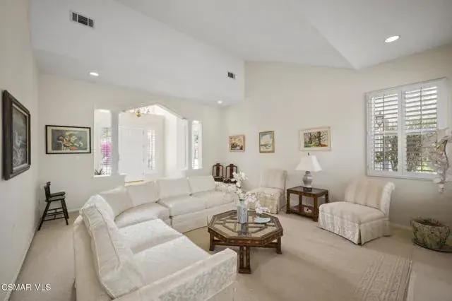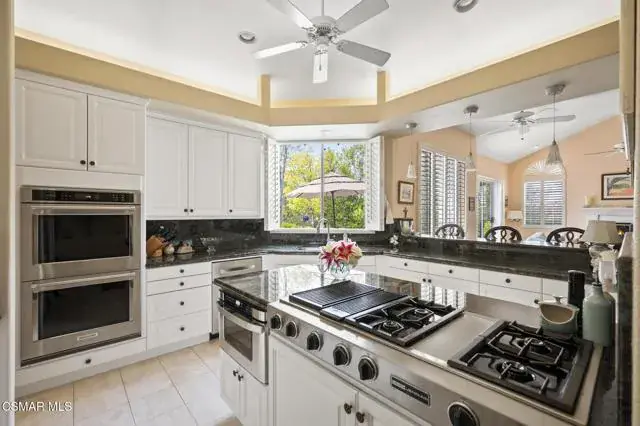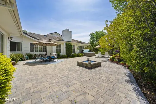 Conejo Oaks living without the Conejo Oaks price tag! Private and secluded, tucked away from the street down a long driveway lies this beautiful Pleasant Oaks Estates home – a cherished single-story treasure on the market for the first time in almost 30 years. Lovingly maintained and reflecting a true pride of ownership, this home offers a unique feeling of being in the islands with its tranquil soothing tones, birds of paradise, tropical trees and incredible sunset skies! With its prime location backing Conejo Oaks and in the MATES Elementary School footprint, this home is a must have! Upon entry, you’re immediately captivated by soaring ceilings, wide hallways, distinctive architectural details, charming niches and a peaceful warmth that fills this home. The gourmet kitchen boasts exquisite Italian granite, stainless steel appliances (which include a built-in refrigerator, double oven, range with a grill and a built-in microwave drawer), a walk-in pantry, a wet bar with a wine fridge, ample storage and a breakfast bar perfect for casual dining. The kitchen opens to the family room with an inviting fireplace (one of 3!), ceiling fans and an abundance of natural light and is next to the formal dining room featuring a tray ceiling adding to the home’s casual elegance. As you retreat to your expansive primary suite through the grand double-door entry, you’re greeted by a romantic fireplace, views of the gorgeous evening sky, a spacious oversized walk-in closet and a large bathroom with dual sinks, a jetted soaking tub and a stand-alone shower. This wing also includes two secondary bedrooms, a full shared bathroom with dual sinks, a powder room, an indoor laundry room with storage and a utility sink and direct access to the attached three car garage. On the opposite side of the residence, you’ll find the formal living room offering a cozy fireplace, and a fourth bedroom and three-quarter bathroom, perfect for multi-generational living! The large wrap-around lush yard features a firepit and hot tub, the perfect scene for enjoying stunning sunsets, gathering with friends and family or unwinding at the end of the day. A private patio off of the primary suite also awaits, an ideal location for your morning cup of coffee, meditation or serene escape to begin your day. Additional highlights of this wonderful home include Plantation shutters throughout, generously sized rooms and ceiling fans in all bedrooms. Nearby award-winning schools, parks, trails, teen and adult centers, the library, shopping, dining and entertainment makes this lovely home a true gem!