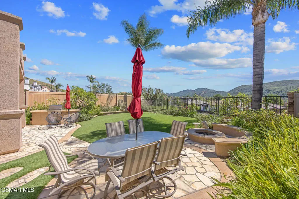 Located in the gated community of Eagleridge in Lang Ranch, this spacious 2,632 sq ft home with 4 bed/3 bath has panoramic views and a fantastic floorplan. Light and bright throughout, the home welcomes you with soaring ceilings and an open, airy feel from the moment you enter. The thoughtfully designed floor plan includes a desirable downstairs bedroom and full bathroom and a kitchen that opens to the family room. The downstairs has brand new designer flooring and fresh paint. Upstairs, you’ll find three spacious bedrooms and a versatile loft perfect for a home office, study area, or playroom. The generous primary suite features wonderful mountain views, a charming balcony, TWO walk-in closets and an enormous bathroom with soaking tub and shower. Step outside to a beautifully landscaped easy-care yard, with a pretty patio, built in BBQ and fire-pit with sitting area all are ideal for relaxing or entertaining. Enjoy your morning coffee taking in the stunning views of the surrounding mountains that create a serene and picturesque setting. Additional highlights include a newer HVAC and water heater. The community includes a swimming pool and spa and the peace of mind of a gated community. This home is conveniently located near top-rated schools, scenic hiking trails, parks, and shopping.