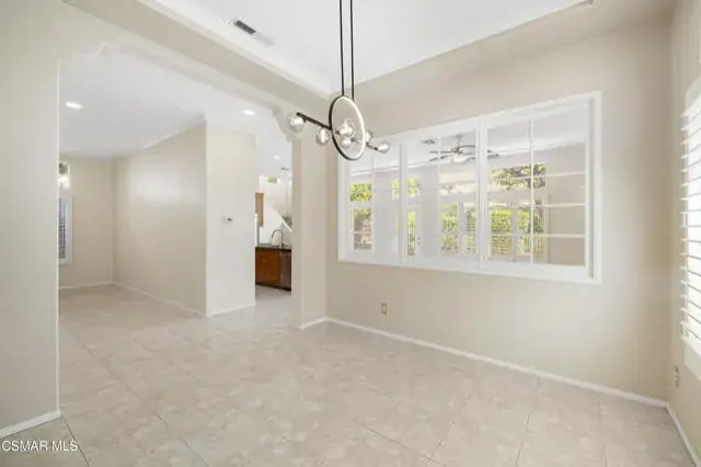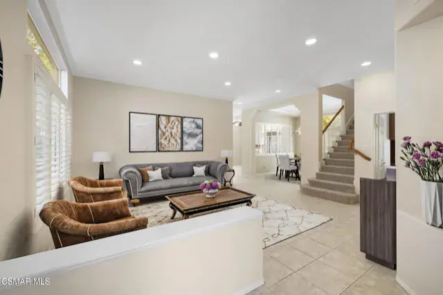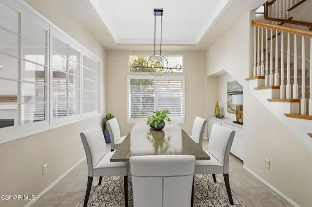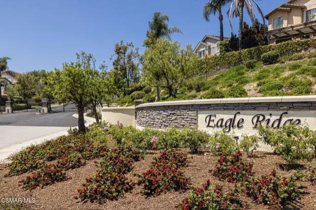 Welcome to this highly desirable Plan 3 Bellagio home, located in the prestigious gated community of Eagle Ridge in Lang Ranch. Situated on a cul-de-sac street with picturesque views of the surrounding hills, this unique floor plan with a dual staircase is also the only model in the community that offers a full 3-car garage. The open layout features spacious living and dining rooms–ideal for entertaining–that flow seamlessly into a bright family room with a fireplace. Beautifully appointed kitchen includes an office nook/landing station, maple cabinetry, granite countertops, a center island, stainless steel appliances (including the refrigerator), a walk-in pantry, and serene views of the private backyard and open space. The optional downstairs (5th) bedroom is currently utilized as a fully equipped home office with custom built-ins. A full bathroom with a shower is also located on the main level. Upstairs are three generously sized secondary bedrooms, each with ample closet space, including one with a walk-in closet. There is a hall bathroom featuring a dual-sink vanity and a tub with shower. The luxurious primary suite boasts sweeping views and a spacious ensuite bathroom with dual vanities topped with granite countertops, a soaking tub, a granite-tiled shower with a frameless glass enclosure, and an expansive walk-in closet with custom built-ins. A dedicated upstairs laundry room includes a sink, washer, and dryer. Additional highlights include community pool, spa, and playground. Enjoy easy access to nearby parks, miles of hiking and biking trails, shopping, and award-winning schools. This is a rare opportunity to own a one-of-a-kind home in one of Lang Ranch’s most coveted neighborhoods!