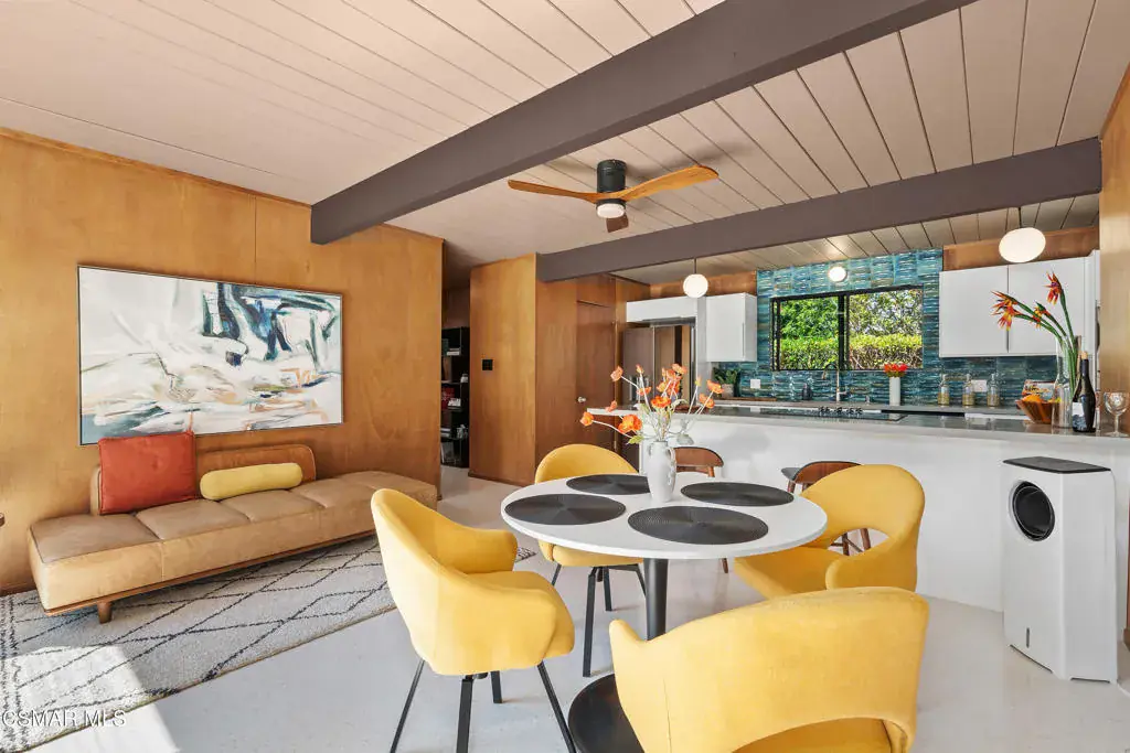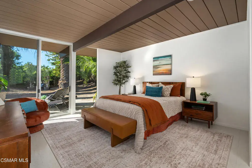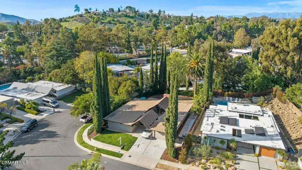 Step into a timeless piece of architectural history with this Mid-Century Modern Eichler home, designed by visionary Joseph Eichler and inspired by Frank Lloyd Wright. These iconic homes feature open, airy floor plans and innovative materials that create a seamless indoor-outdoor connection. Floor-to-ceiling windows, expansive living areas, and a private atrium offer natural light and tranquility. Clean lines and minimalist design echo Wright’s influence, while vibrant exteriors and functional beauty give these homes a distinct modern flair.With fewer than 600 Eichlers in Southern California–and just over 100 in Thousand Oaks–this is ideal for creatives, innovators, and design lovers. An Eichler is more than a house; it’s architectural art that connects you to nature and the California lifestyle.This dramatic Double-Gable Eichler sits on a rare elevated corner lot in a quiet cul-de-sac. Beautifully renovated to honor the original concept, it was envisioned by the acclaimed Jones & Emmons firm. Enter through the central atrium and experience expanded living spaces with soaring volume and light–true indoor/outdoor living in your own sanctuary.The spacious 5-bedroom layout includes an extra-large open living and dining area plus a dedicated laundry room for added functionality. Modern upgrades include a brand-new kitchen with stainless appliances and breakfast bar, and fully updated baths with a soaking tub and frameless glass showers. Every detail respects the home’s mid-century roots while delivering contemporary comfort.Enjoy serene views of Tarantula Hill from the front and the expansive backyard. The setting is peaceful yet dramatic–perfect for those seeking a retreat with strong architectural identity. Move-in ready and ideally located near the 101 freeway, top-rated schools, premier shopping, dining, hiking, Wildwood Park, and the Santa Monica Mountains–just 30 minutes to Malibu and under an hour to Burbank Studios and Santa Barbara.Note: Pool and some backyard images are virtually staged.
