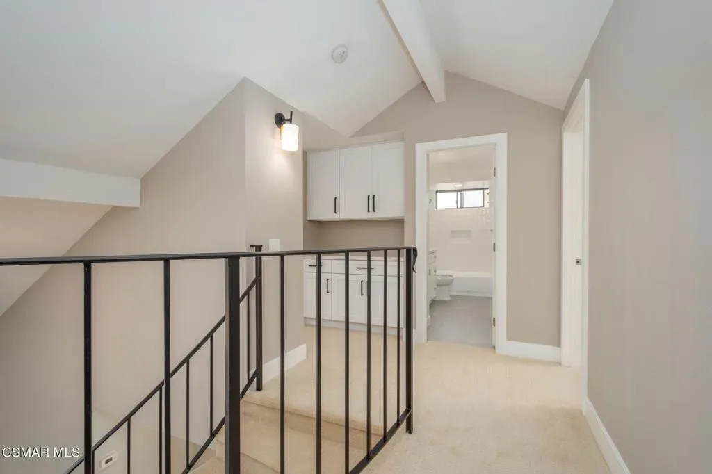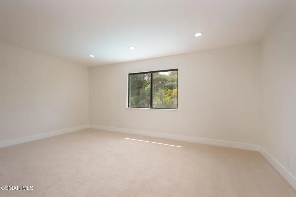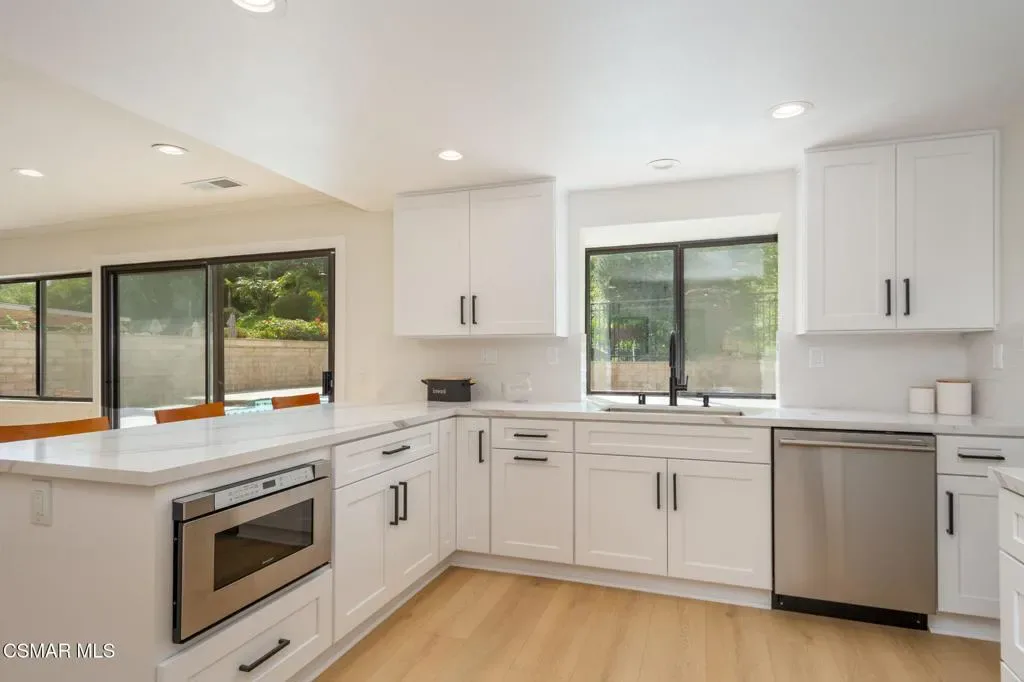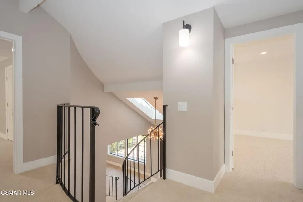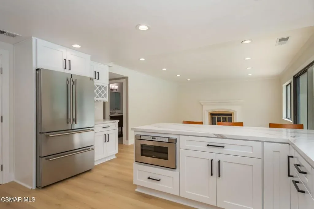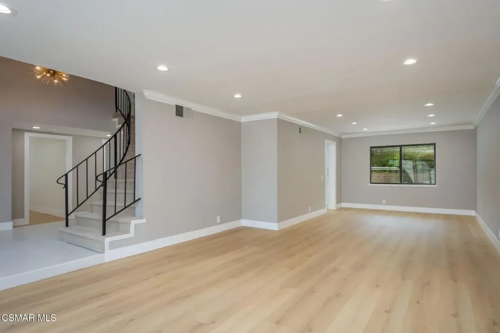 Step into this recently refurbished Thousand Oaks home situated in the highly desirable Fountainwood East neighborhood. Positioned with an excellent location, on a quiet cul-de-sac of only 7 homes. With a private gated courtyard and a well-thought-out floor plan, this home offers a dramatic spiral staircase entry with vaulted ceilings. Large spacious Living room flowing into the dining room. One bedroom downstairs with adjacent bathroom that has been fully upgraded with freestanding vanity, quartz counter-tops, tiled shower surround with glass enclosure. Spacious family room with F/P opens to the newly refurbished kitchen. The chef’s kitchen offers newly installed clean white cabinetry, quartz counter-tops, tile back splash, stainless steel appliances & walk-in pantry. Recent upgrades throughout the house include laminate plank flooring, interior/exterior paint, designer carpet, interior doors, baseboards, casing, interior light fixtures, LED recessed lighting, interior outlets & switches. Three large additional bedrooms upstairs. The luxurious primary suite offers a nice relaxing balcony. The ensuite bathroom is spa-like quality and feel, offering dual vanity, soaker tub, tile shower surround with glass enclosure and fully tiled floor to ceiling walls. A refurbished hall bathroom services the two additional large upstairs bedrooms. The backyard is a entertainers delight with sparkling pool, spa and nice mature landscaping. Three car garage with newly installed garage doors, partially drywalled, newly installed rain gutters and solar panels offering energy efficiency. Low HOA. Great convenient location near parks, top rated schools, hiking trails, restaurants, shopping, golf courses & freeway access. Don’t wait on this one!
