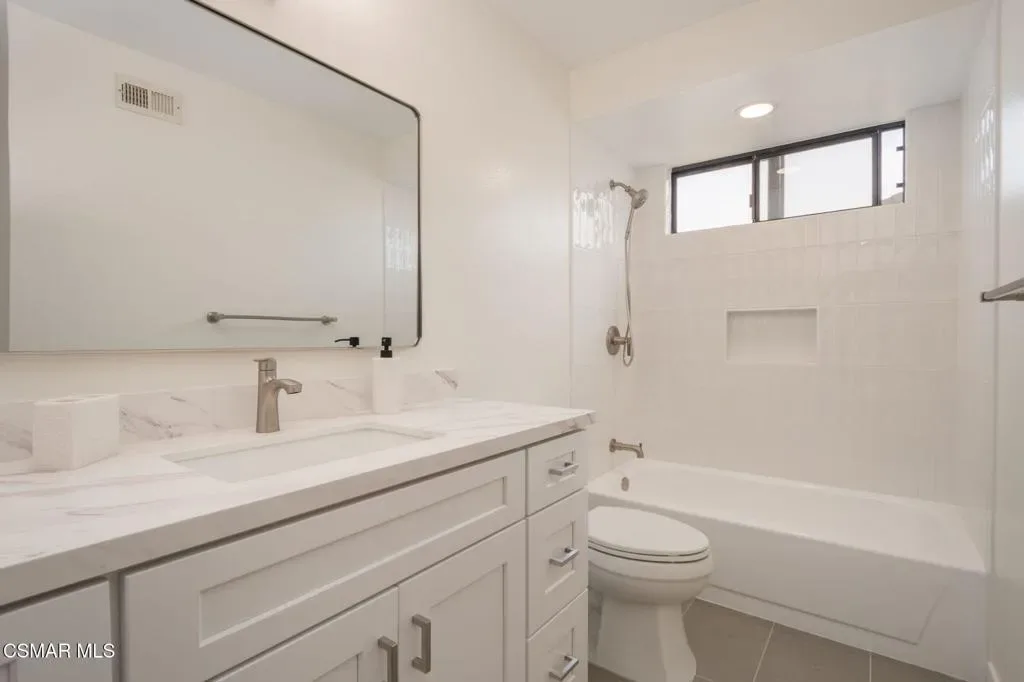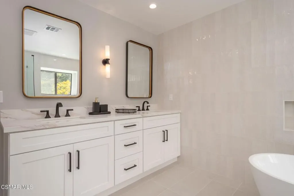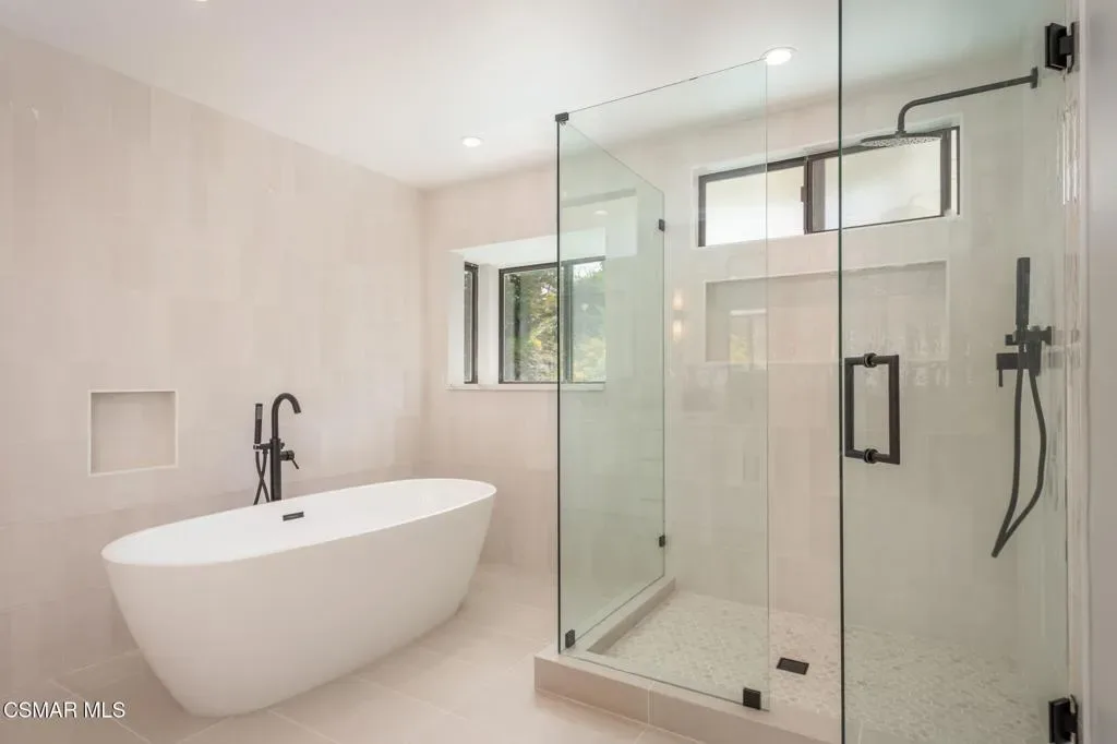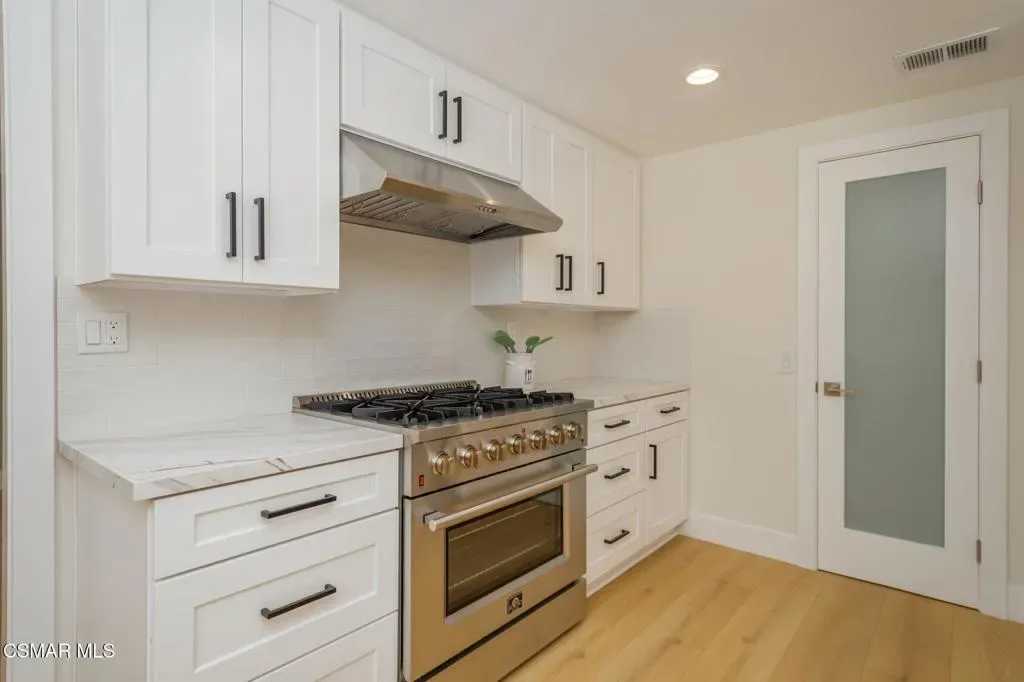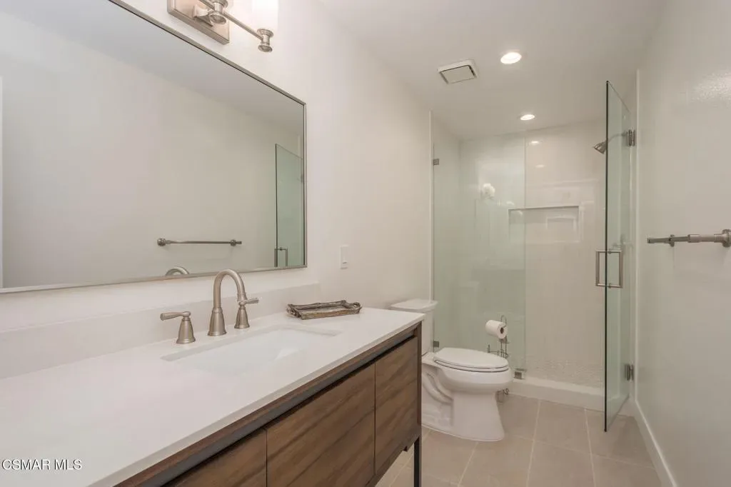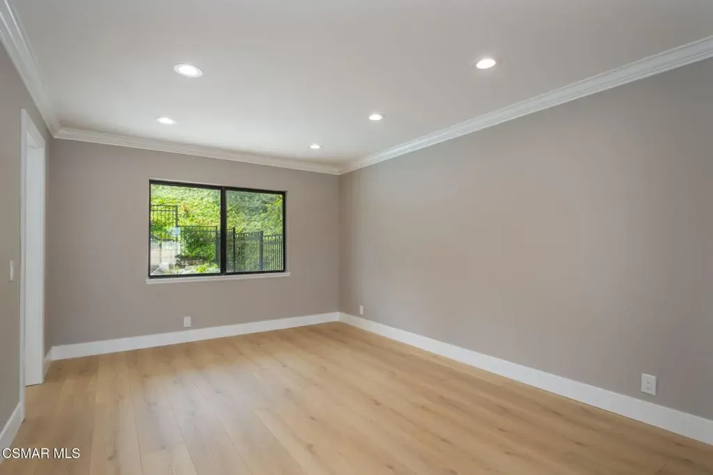Step into this recently refurbished Thousand Oaks home situated in the highly desirable Fountainwood East neighborhood. Positioned with an excellent location, on a quiet cul-de-sac of only 7 homes. With a private gated courtyard and a well-thought-out floor plan, this home offers a dramatic spiral staircase entry with vaulted ceilings. Large spacious Living room flowing into the dining room. One bedroom downstairs with adjacent bathroom that has been fully upgraded with freestanding vanity, quartz counter-tops, tiled shower surround with glass enclosure. Spacious family room with F/P opens to the newly refurbished kitchen. The chef’s kitchen offers newly installed clean white cabinetry, quartz counter-tops, tile back splash, stainless steel appliances & walk-in pantry. Recent upgrades throughout the house include laminate plank flooring, interior/exterior paint, designer carpet, interior doors, baseboards, casing, interior light fixtures, LED recessed lighting, interior outlets & switches. Three large additional bedrooms upstairs. The luxurious primary suite offers a nice relaxing balcony. The ensuite bathroom is spa-like quality and feel, offering dual vanity, soaker tub, tile shower surround with glass enclosure and fully tiled floor to ceiling walls. A refurbished hall bathroom services the two additional large upstairs bedrooms. The backyard is a entertainers delight with sparkling pool, spa and nice mature landscaping. Three car garage with newly installed garage doors, partially drywalled, newly installed rain gutters and solar panels offering energy efficiency. Low HOA. Great convenient location near parks, top rated schools, hiking trails, restaurants, shopping, golf courses & freeway access. Don’t wait on this one!