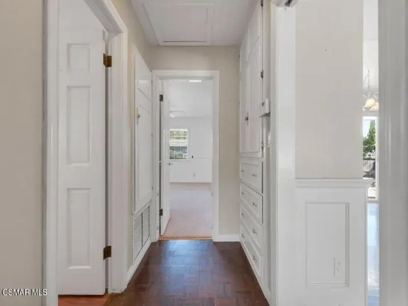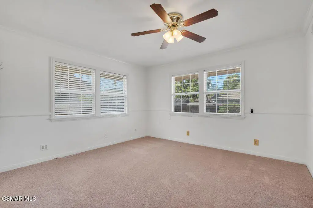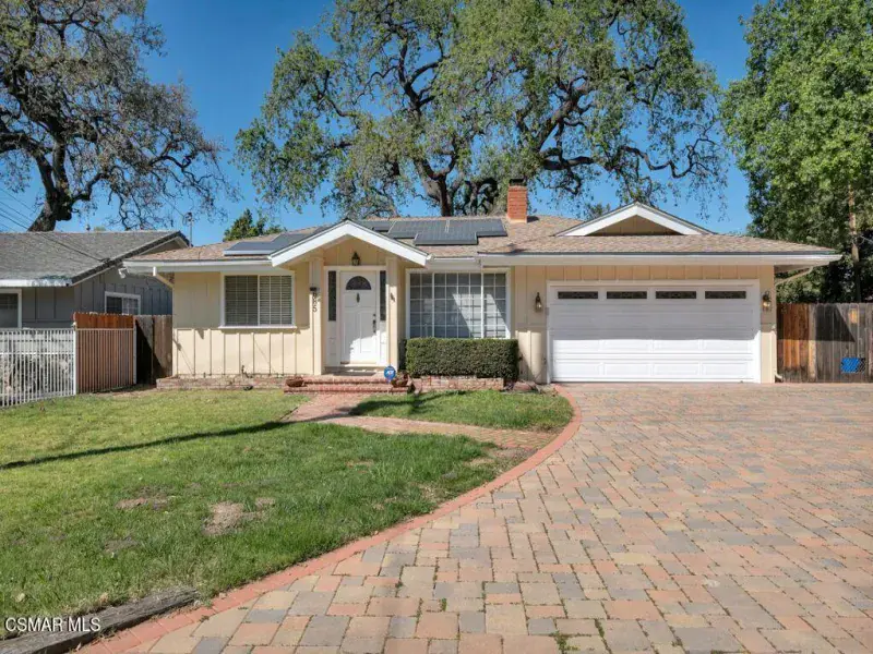 What an opportunity for country living in the city. This charming home is located on a huge corner lot with tons of potential on one of the most unique streets in Thousand Oaks. Step inside to a cozy living room with new carpet, custom molding and a beautiful fireplace. The galley kitchen is open to a dining area with built-in cabinetry. Both bedrooms offer new carpet, fresh paint and two separate closets in the primary. An indoor laundry room features lots of storage cabinets and the HVAC system is newer. The extensive backyard is the highlight with a separate building (not permitted) that can be used as an office with separate climate control. There are two RV access gates, an above-ground spa and storage shed. And this area is zoned for horses.